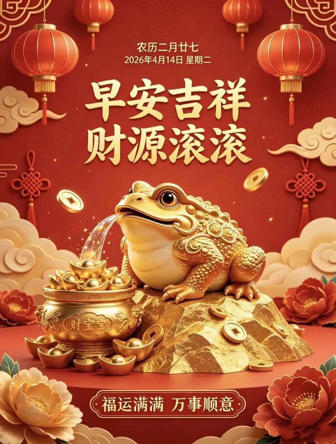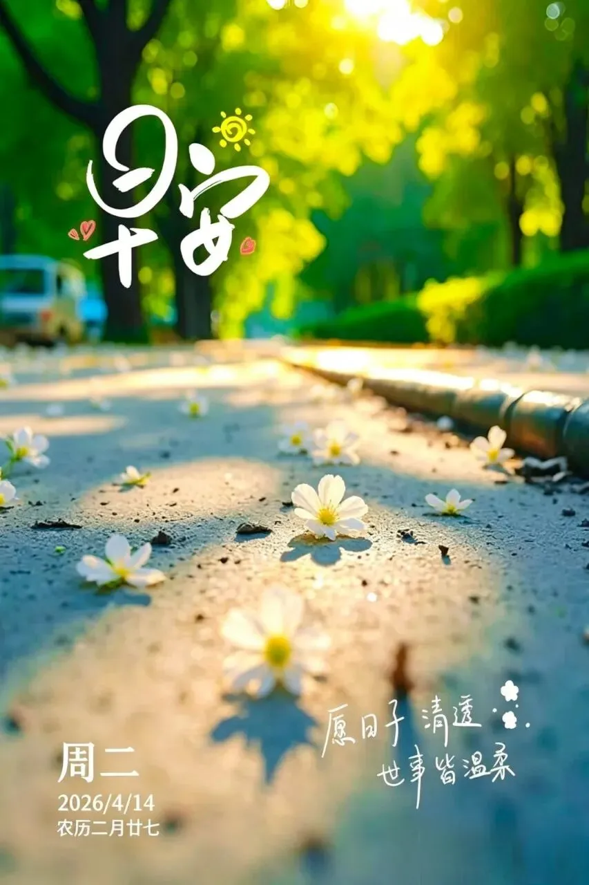 当前位置:首页>美女资讯>4月14日|周二早安祝福图片,一声早安,总愿您幸福平安,早安吉祥!
