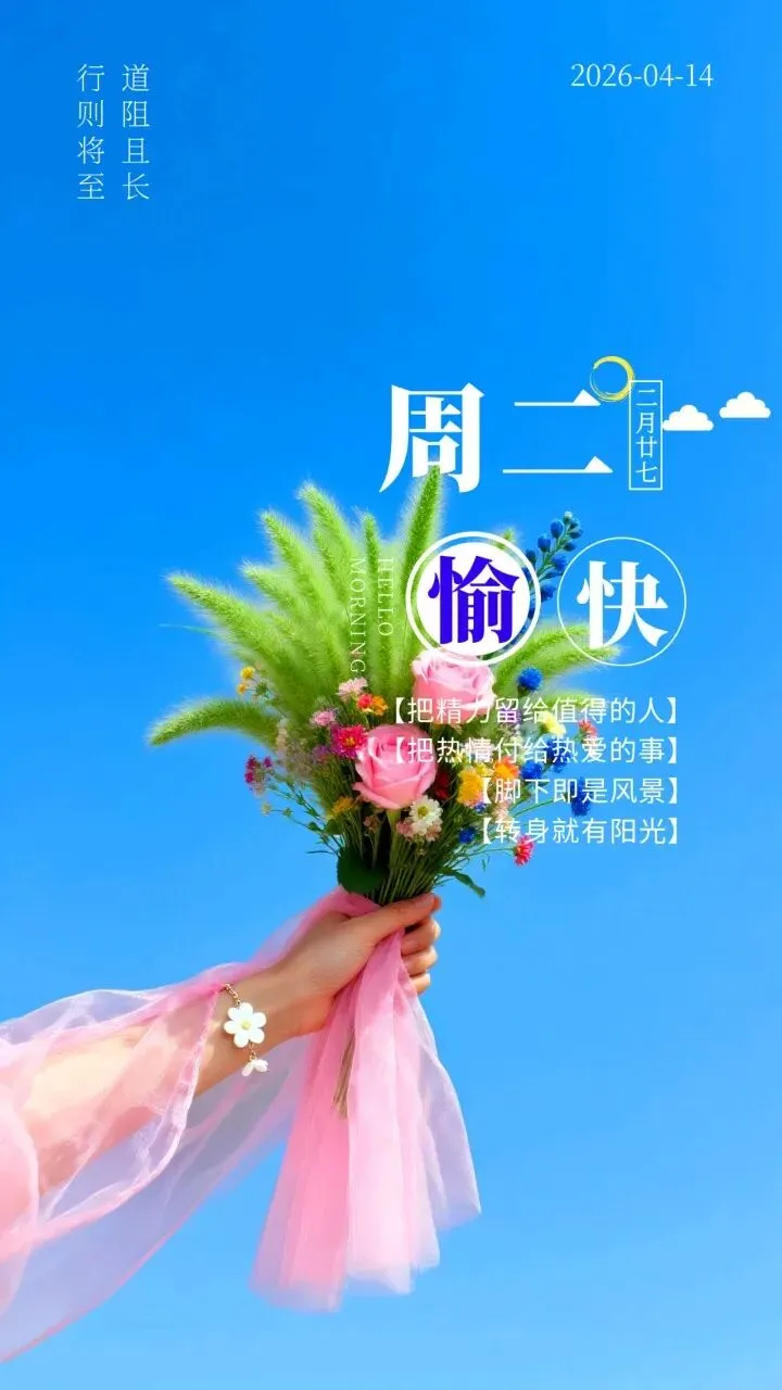 当前位置:首页>美女资讯>4月14日 早安图片 周二早安祝福图片大全最新