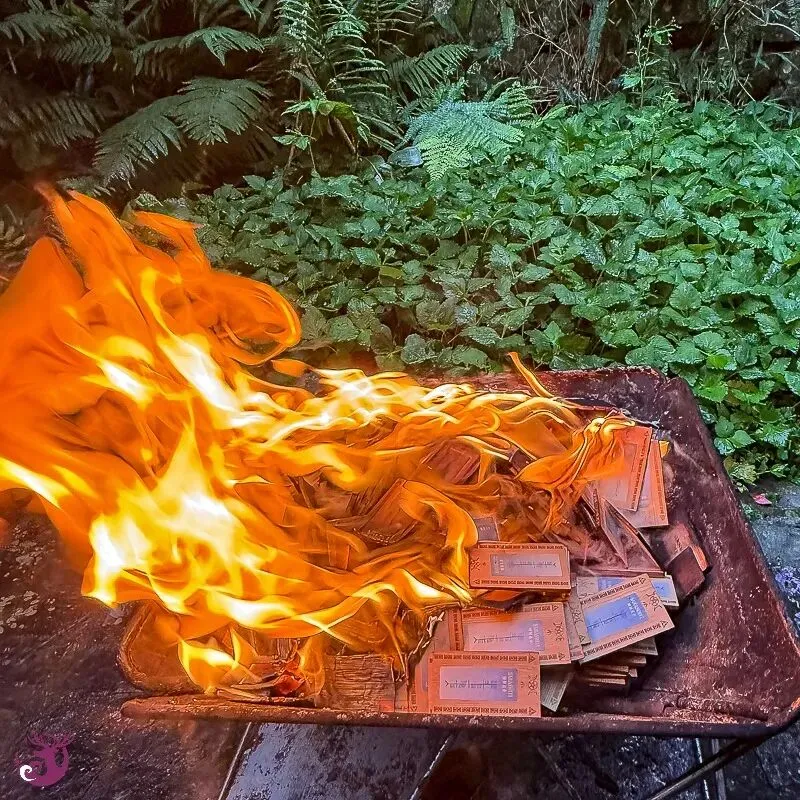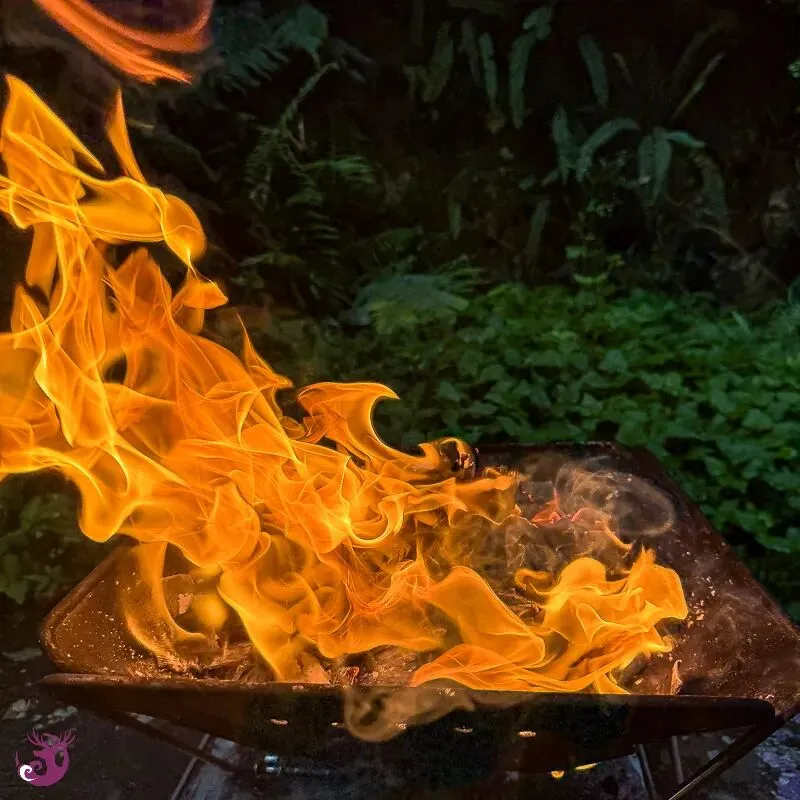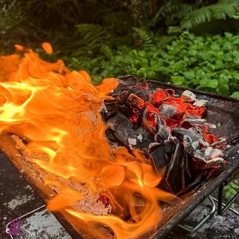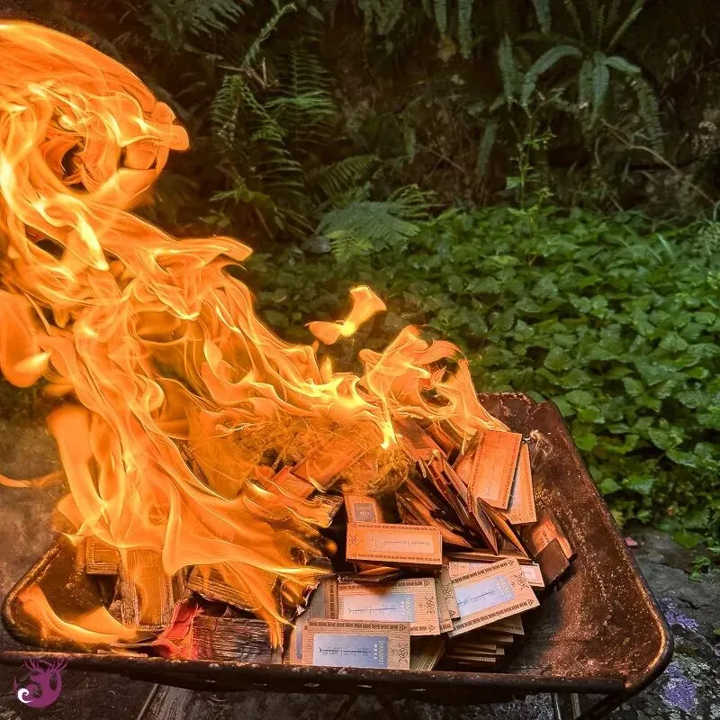 辩财天女神的仪式收场日,从上午的大太阳变成下午的阴而微雨。原本有点担心在山上会遇到大雨,但女神真的很仁慈,让我们在带着清凉水气的微风中进行火祭。甚至在这场火祭之中,还可以感觉到火中的水气,真的非常神奇——一边看着火焰,却一边感觉到热气之中的水气。伟大的水之女神啊,感谢与我们同在。