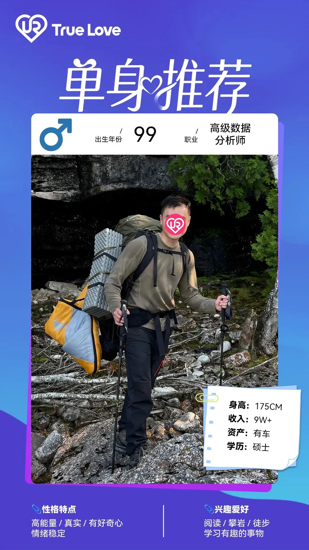 99 年硕士小哥哥,高级数据分析师,年入9W +。性格高能量、真实坦诚,对世界充满好奇心,情绪稳定有耐心,做事认真专注,热爱探索与成长。