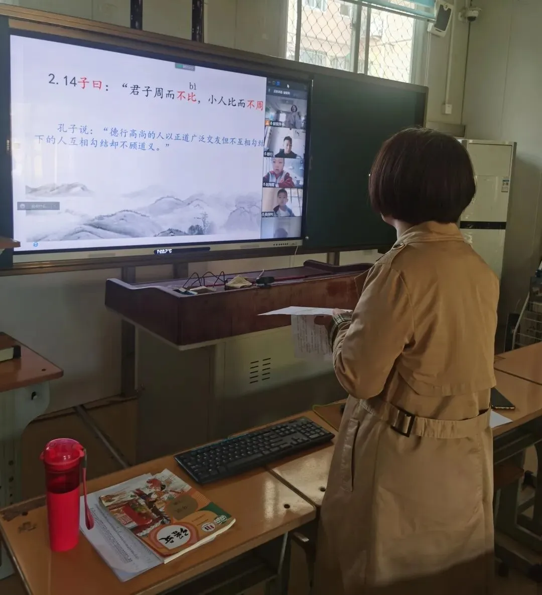 7点40分  来到学校,打开电脑,开启元气满满的一天。作为学校巡课小组的一员,每天我都会来到各个教室去看看各位老师们的线上教学情况,有无设备故障问题,询问一下班级同学们的早读情况,有问题的及时记录下来并联系相关人员协调解决。每天我都会看到王琛老师的女儿安静地坐在一个角落画画,等待妈妈指导完学生们早读再吃饭;看到崔银萍老师站在大屏幕前逐字逐句教给学生们诵读《论语》;看到刘士霞老师为了更好指导学生的书写在不断调试摄像头、找角度……这些事虽小,却深深温暖着我,我被三小的各位班主任们感动着,每当这个时候我都会不自觉拿出手机把这些场景拍下来,我想这份对教育的执着源自于老师们对学生们的爱。