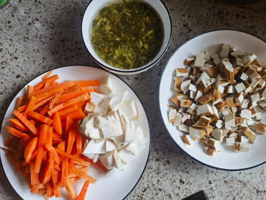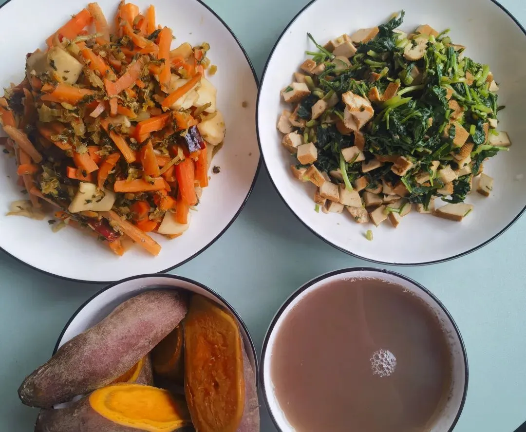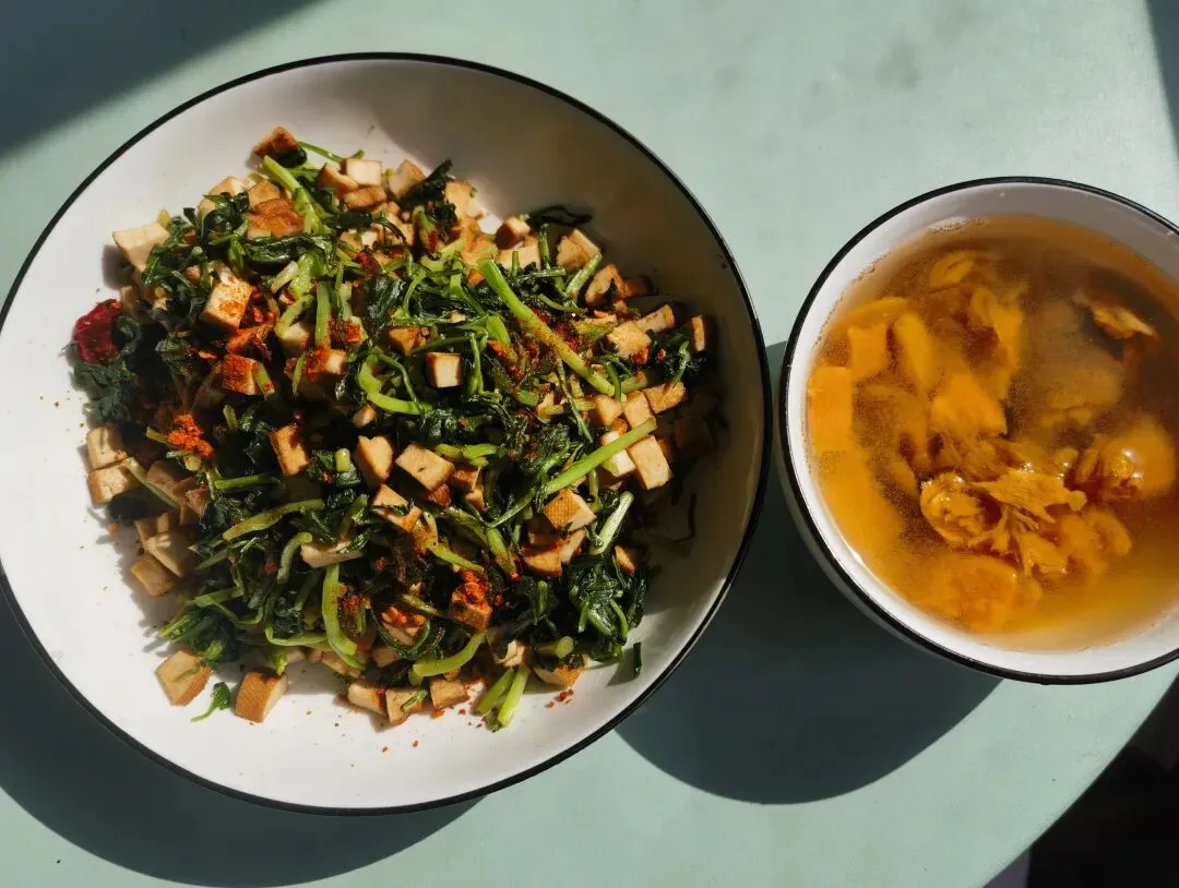 2.中午做了雪菜炒胡萝卜🥕,春菜马兰头炒豆干。