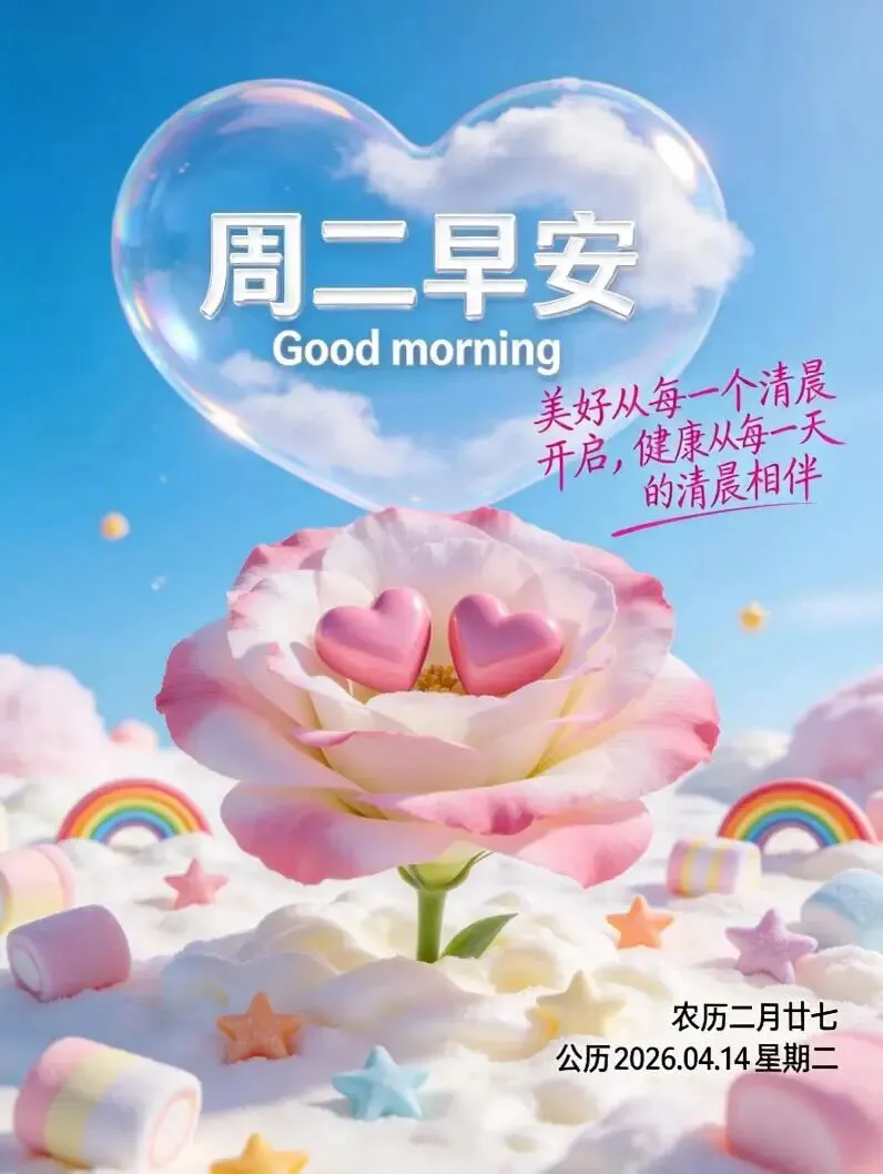 当前位置:首页>美女资讯>2026年4月14日周二早安祝福语图片,最新的周二最美的早安祝福语图 ,周二早安祝福语大全