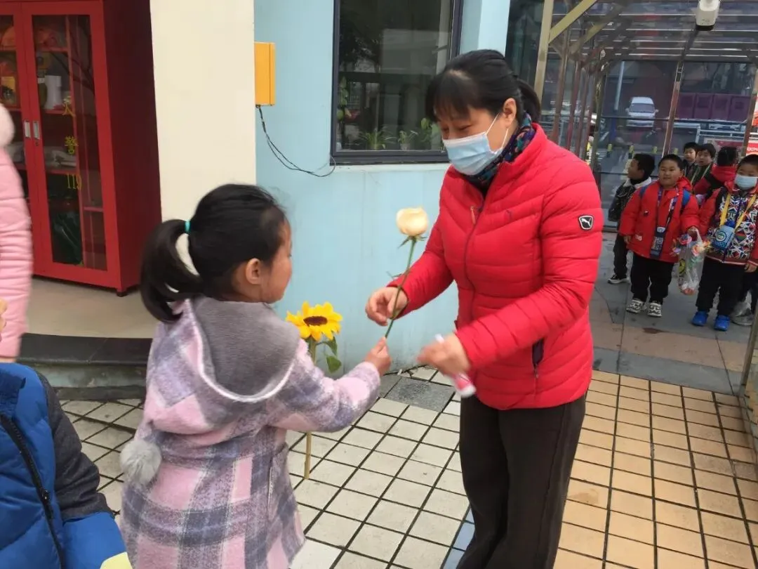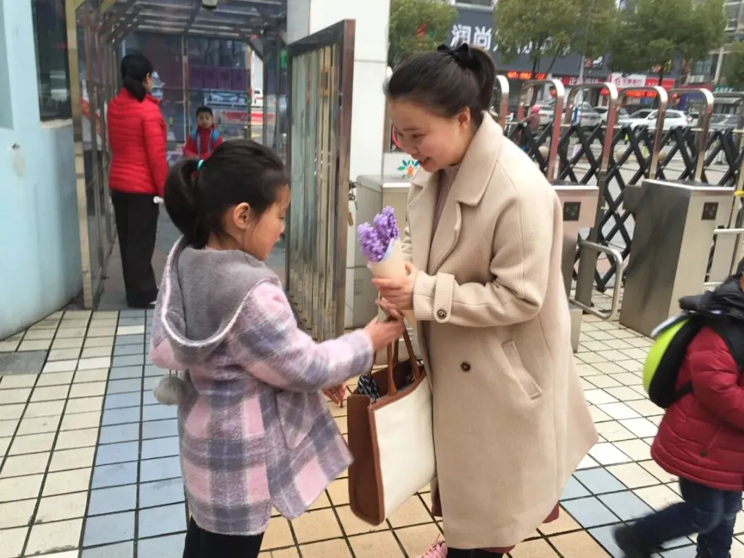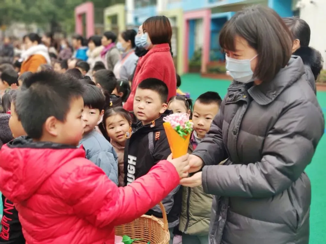 3月8日清晨,大2班的孩子们早早来到幼儿园,为老师们送上花束,留住一张张爱的合影,并祝福老师节日快乐。
