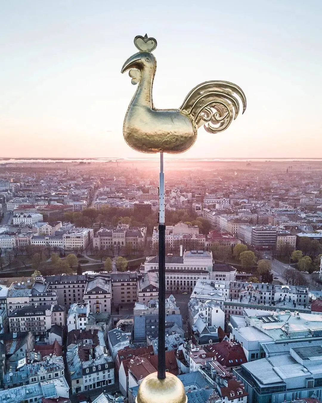 公鸡(风信鸡)是里加的标志性象征,常见于老城区教堂的尖顶,这次,我们将它取下来和黑头宫拍张合照,还蛮有趣的。