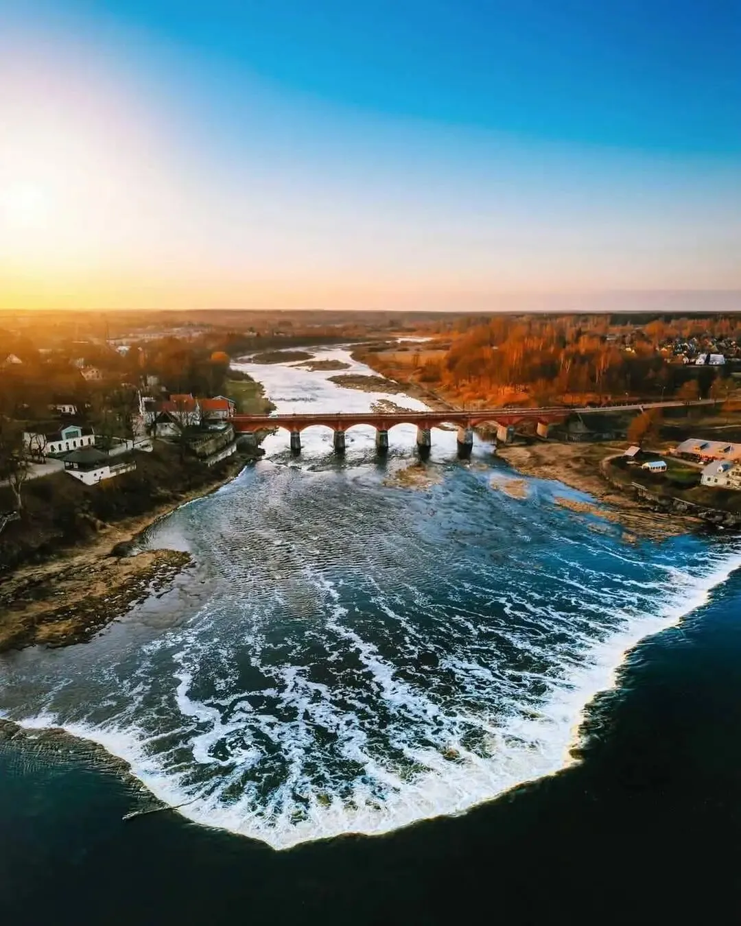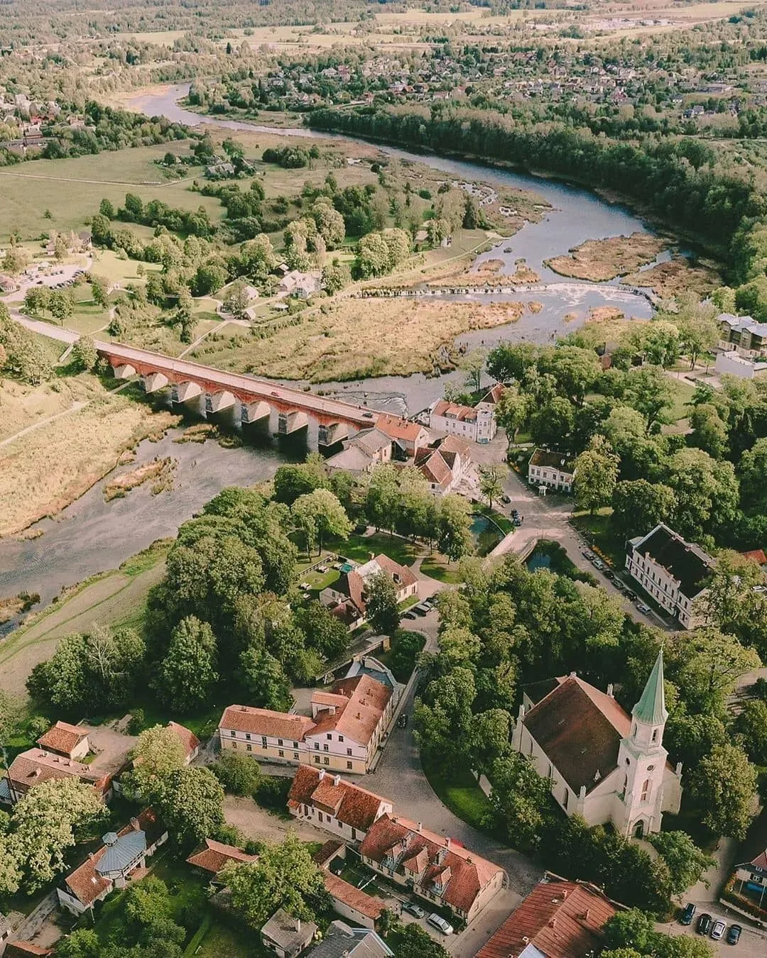 📍文塔河的红砖桥是这座小城的一道经典风景,你可以在桥上看日落,沿着河边散步或找一家咖啡馆,静静的坐一下午。
