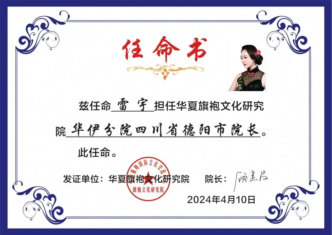 2024年担任华夏旗袍文化研究院德阳分院院长