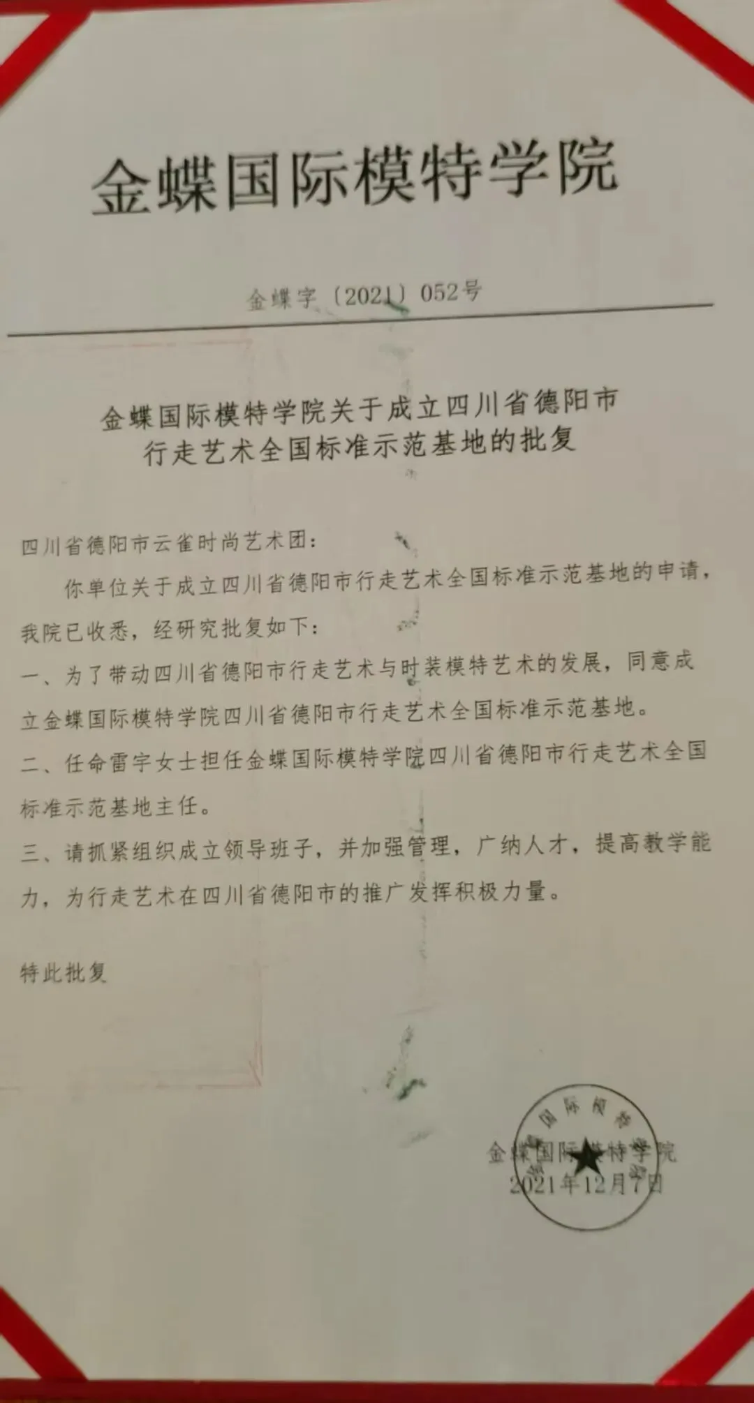 2022年任金蝶国际模特学院德阳分院院长