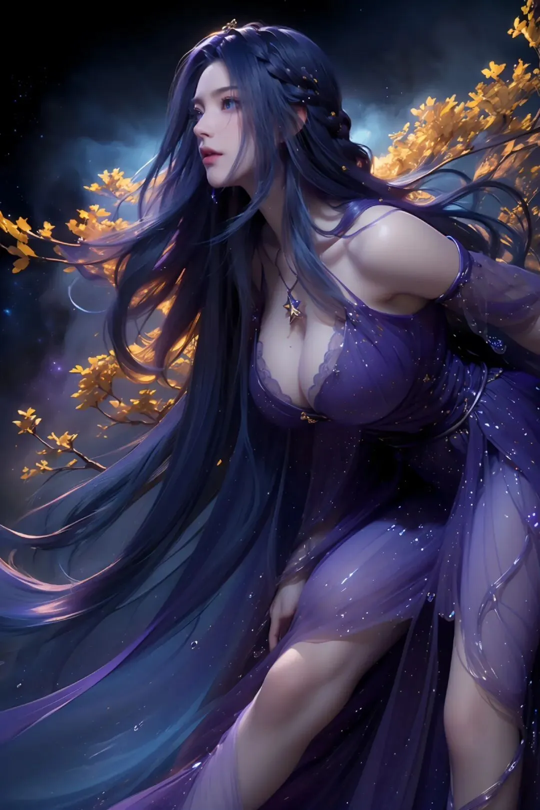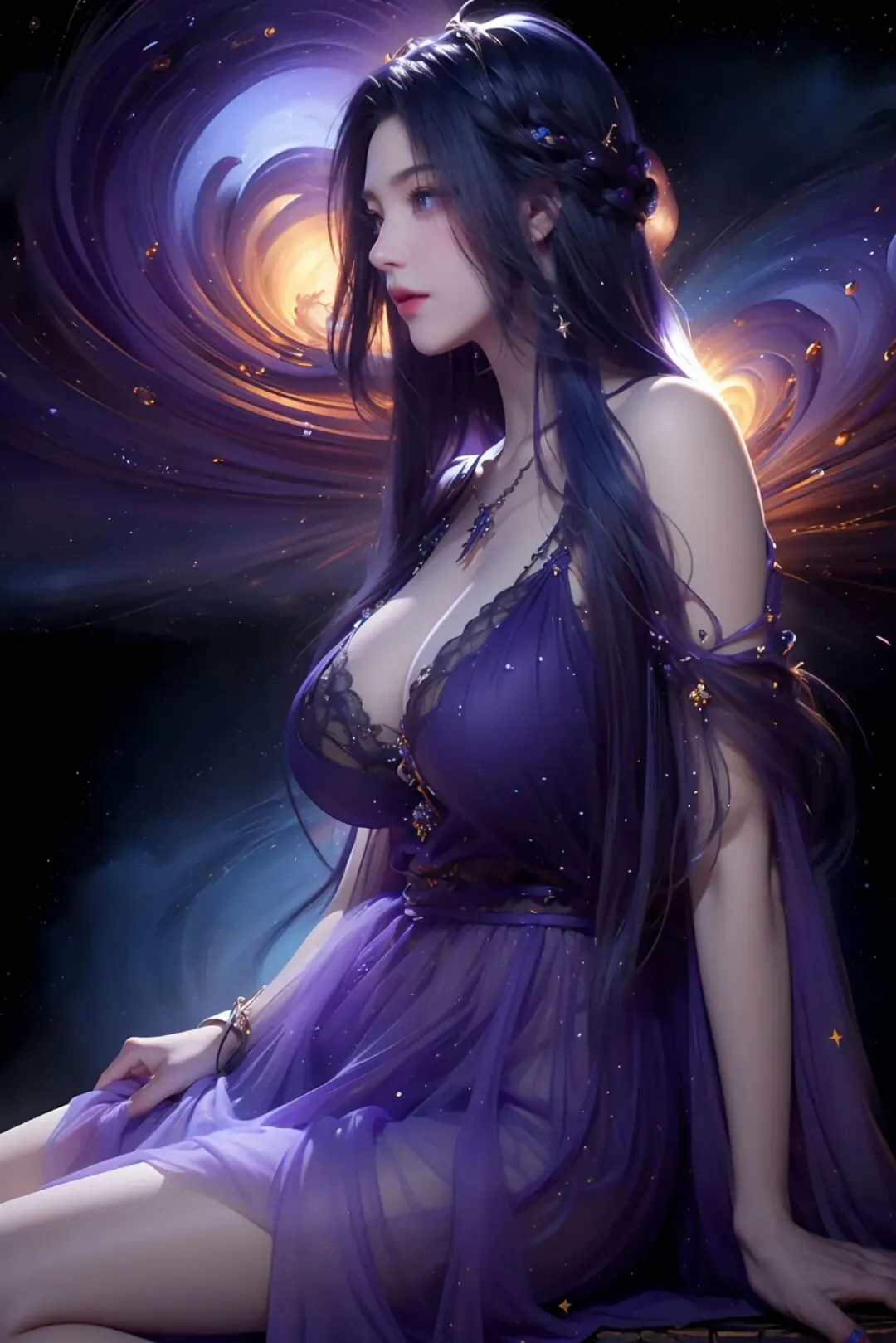星海翻涌处,紫纱覆芳华,独坐观万象,清冷自天成。
