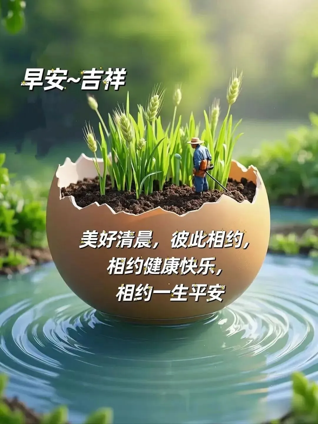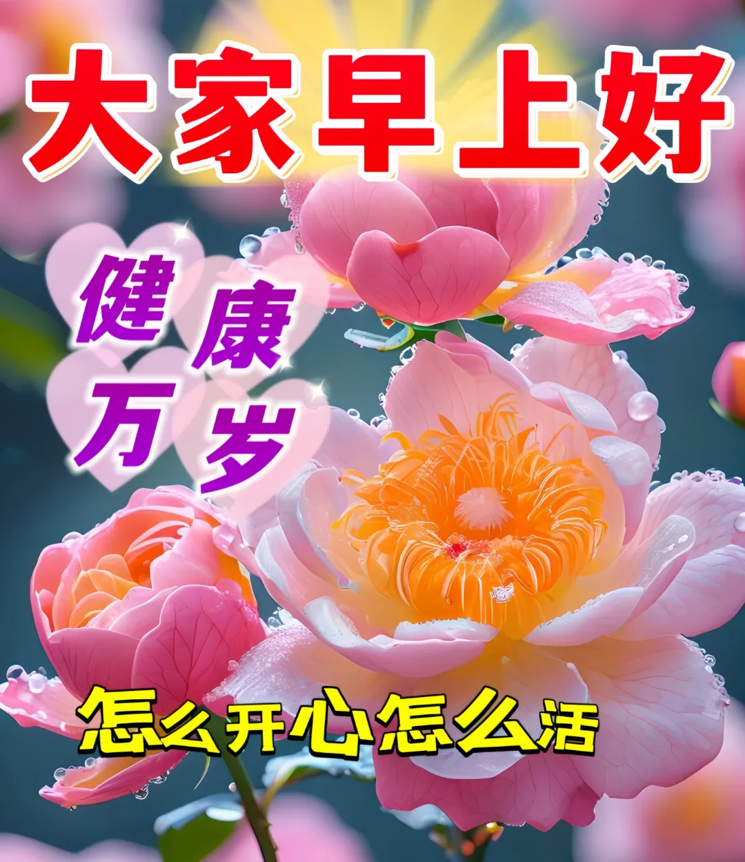 清晨轻声问个好,愿你一天都顺心美好,一辈子不容易,缘分要好好珍惜,常惦记,常问候,愿你健康久久,早安!🌹😊❤️🌺☀️🎉
