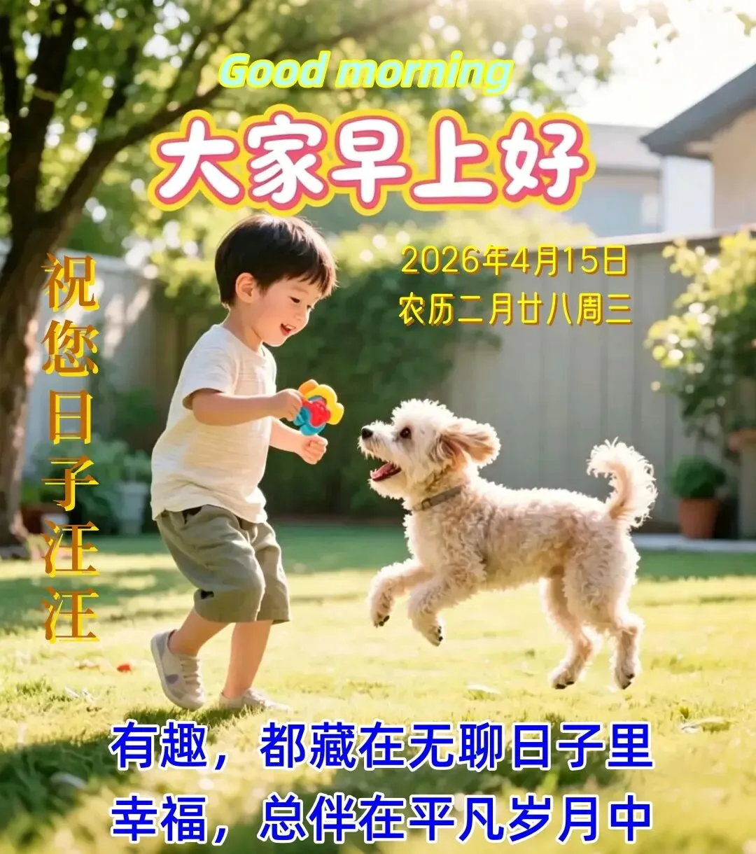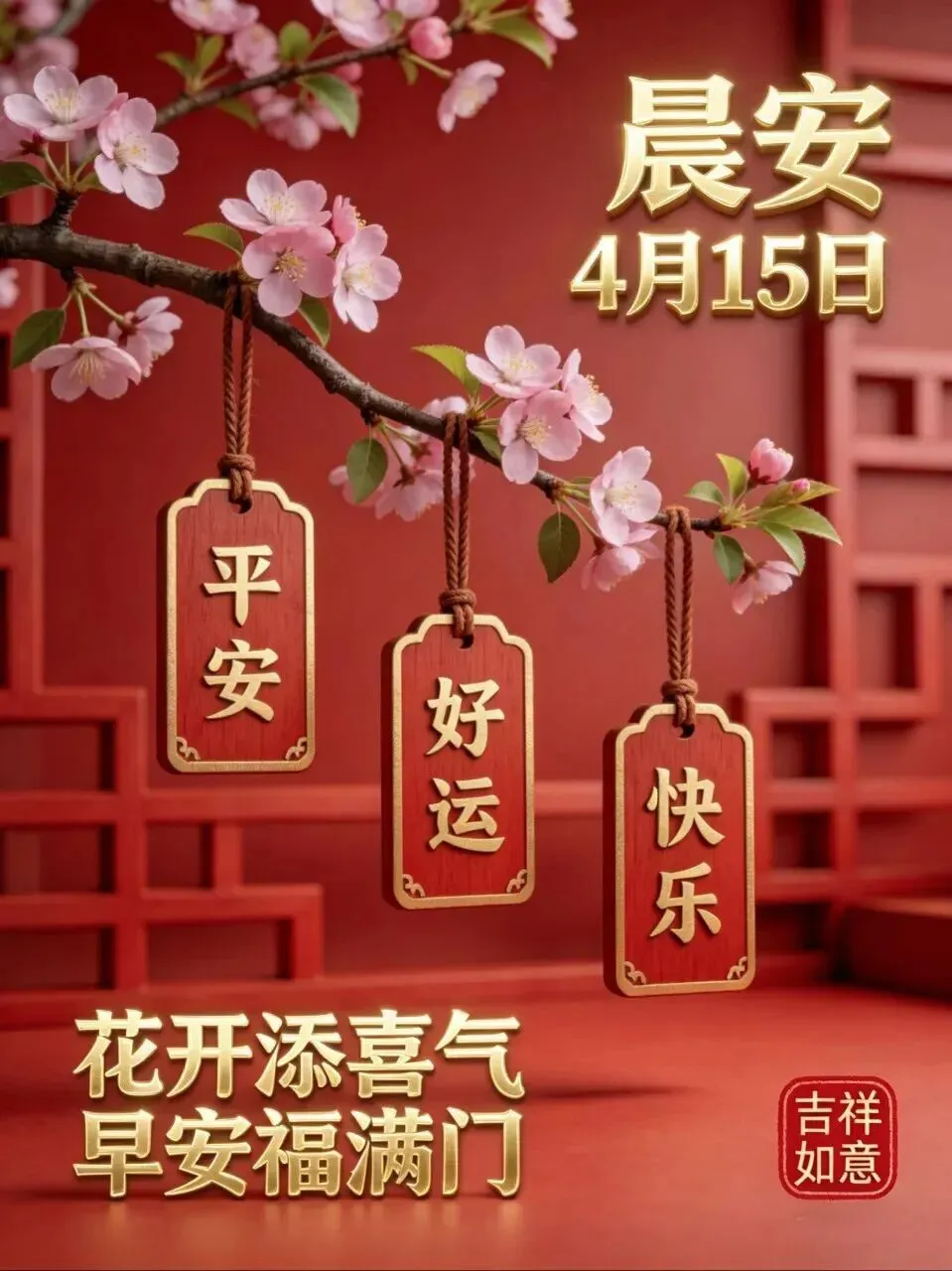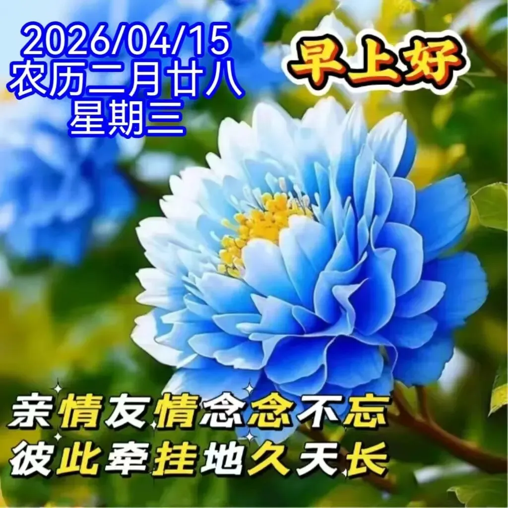 2026年4月15日周三早安图片,春来百花香,大地换新装.户外多行走,身体才健康