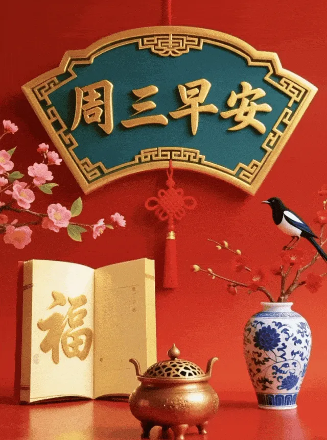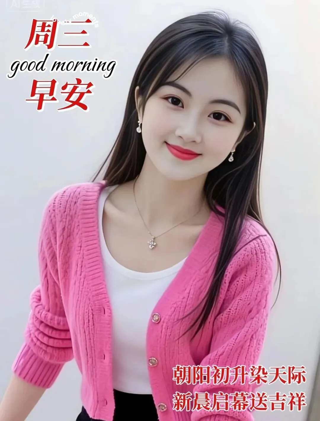 周三清晨🌅,问候送到📩。岁月流转⏳,情谊绵长🎈,一句早安寄牵挂💌,愿您日日都安康🏮,事事都顺心🧧,身边常伴喜乐😄,生活悠闲自在🛋️,平安幸福🏵️,福寿绵长🌺。