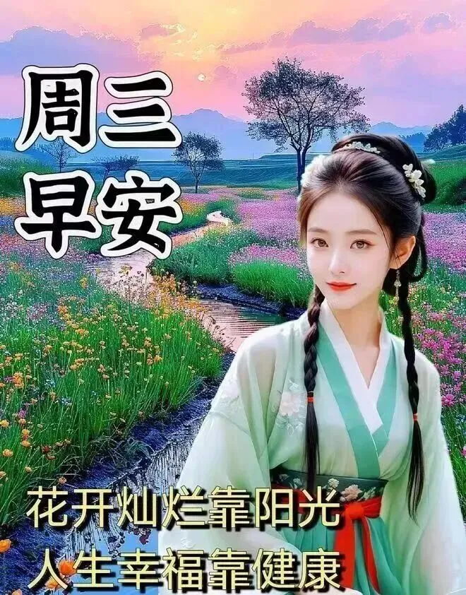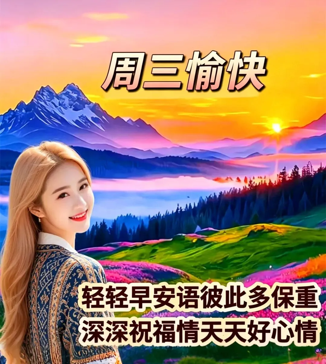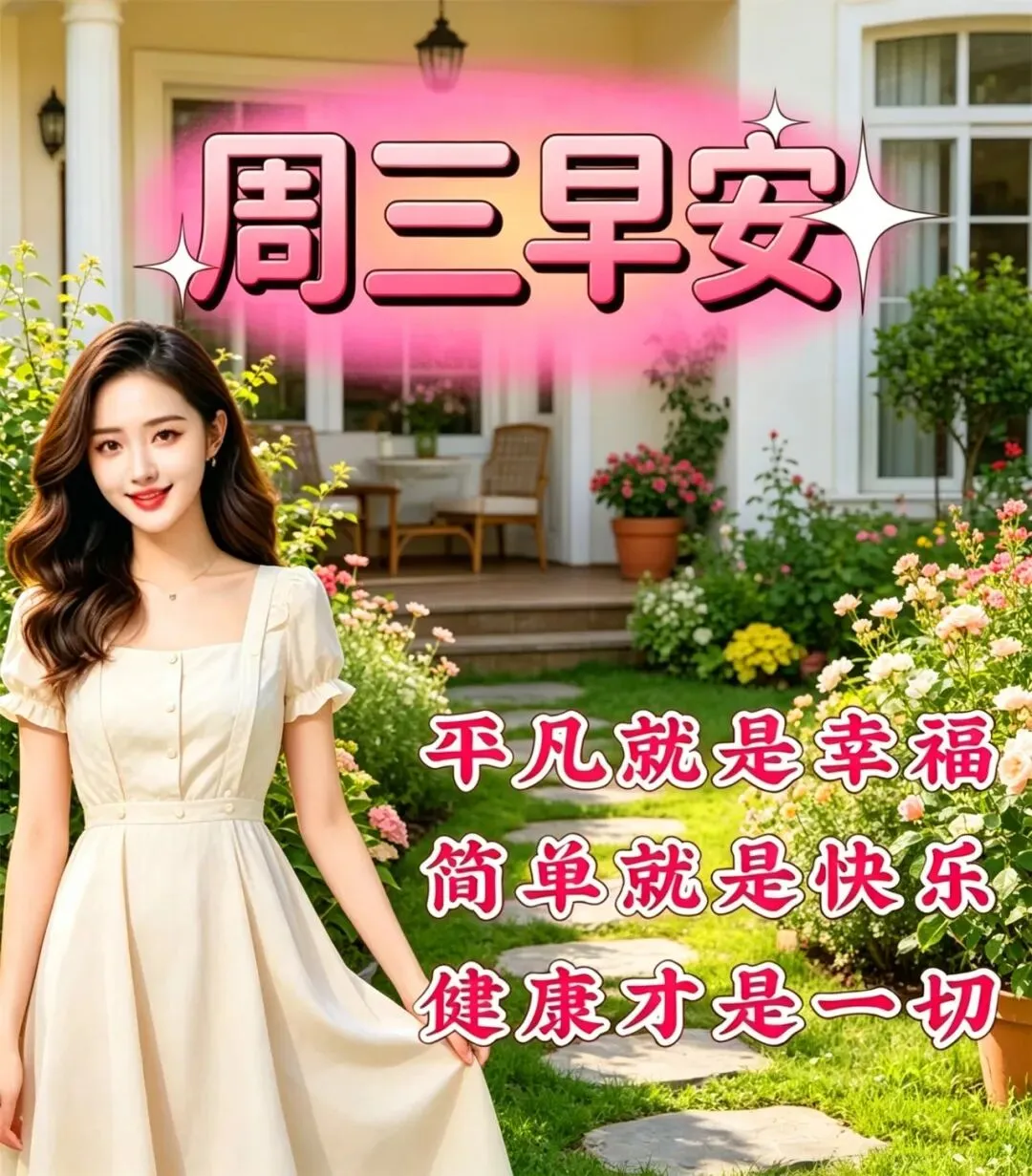 早安送安康,幸福万年长。愿你岁月无波澜,余生皆欢喜,身体强健如松,心情灿烂如花,事事皆美满,周三愉快!