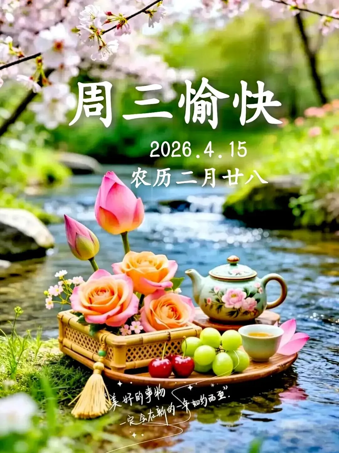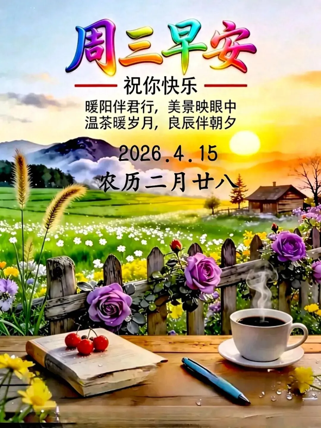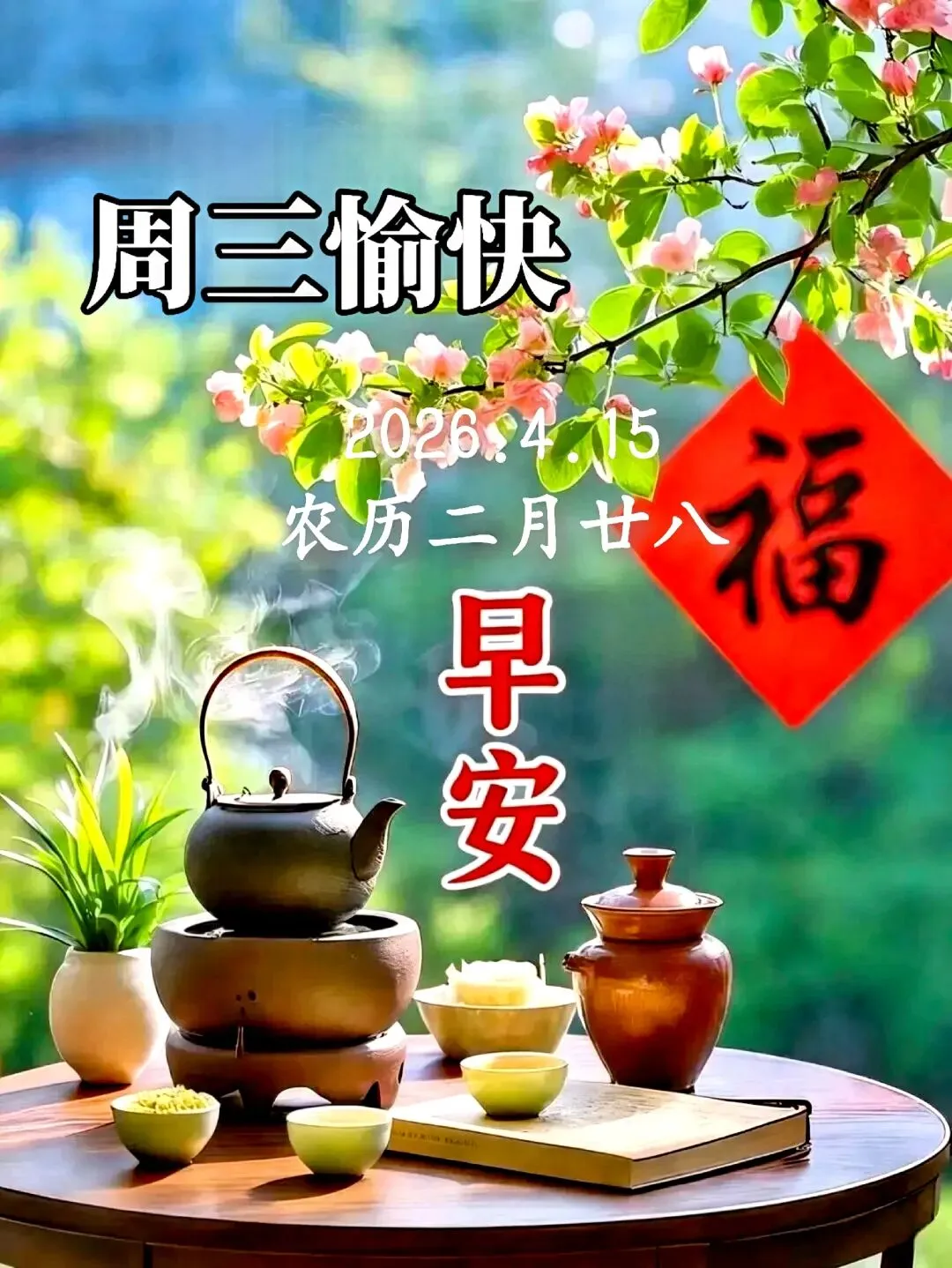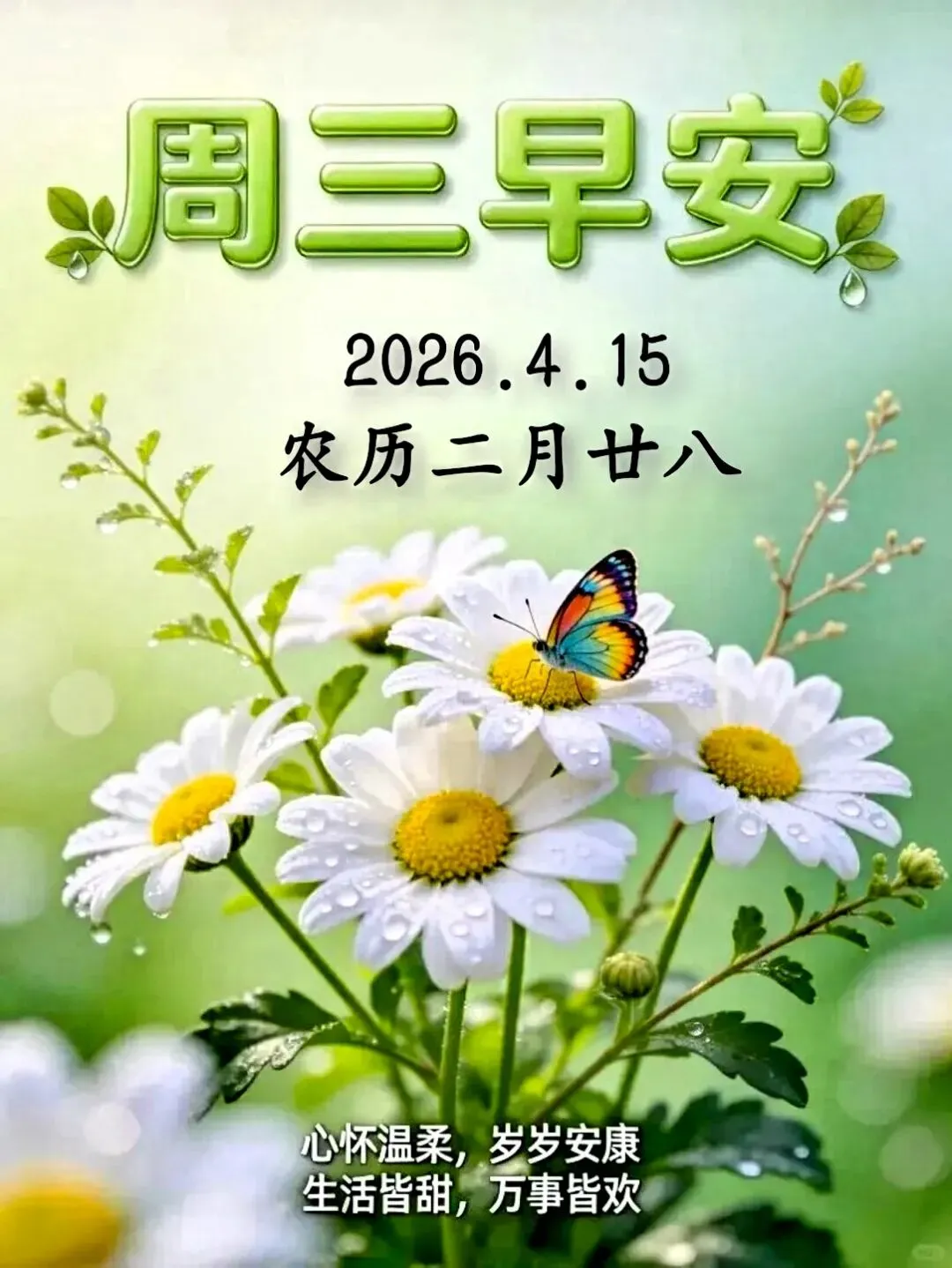 当前位置:首页>美女资讯>2026年4月15日周三早安暖心祝福图片,愿您心有暖阳 所遇皆美好