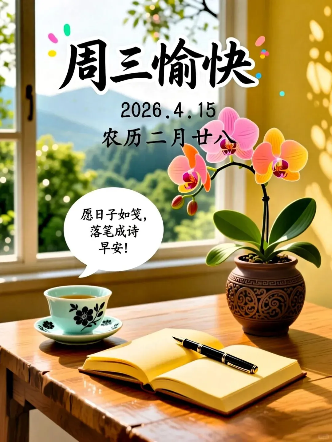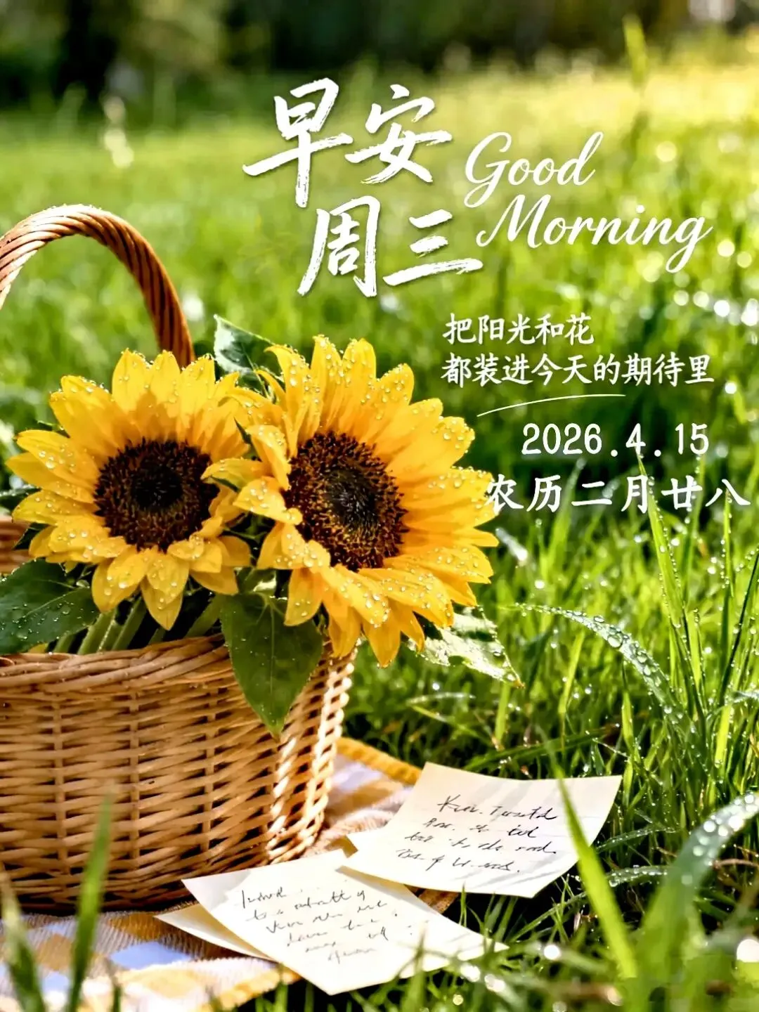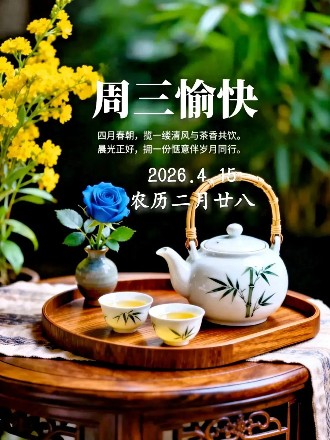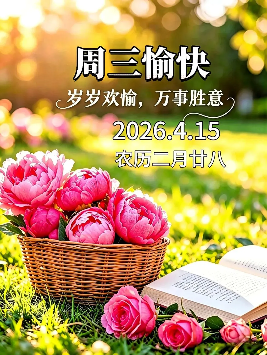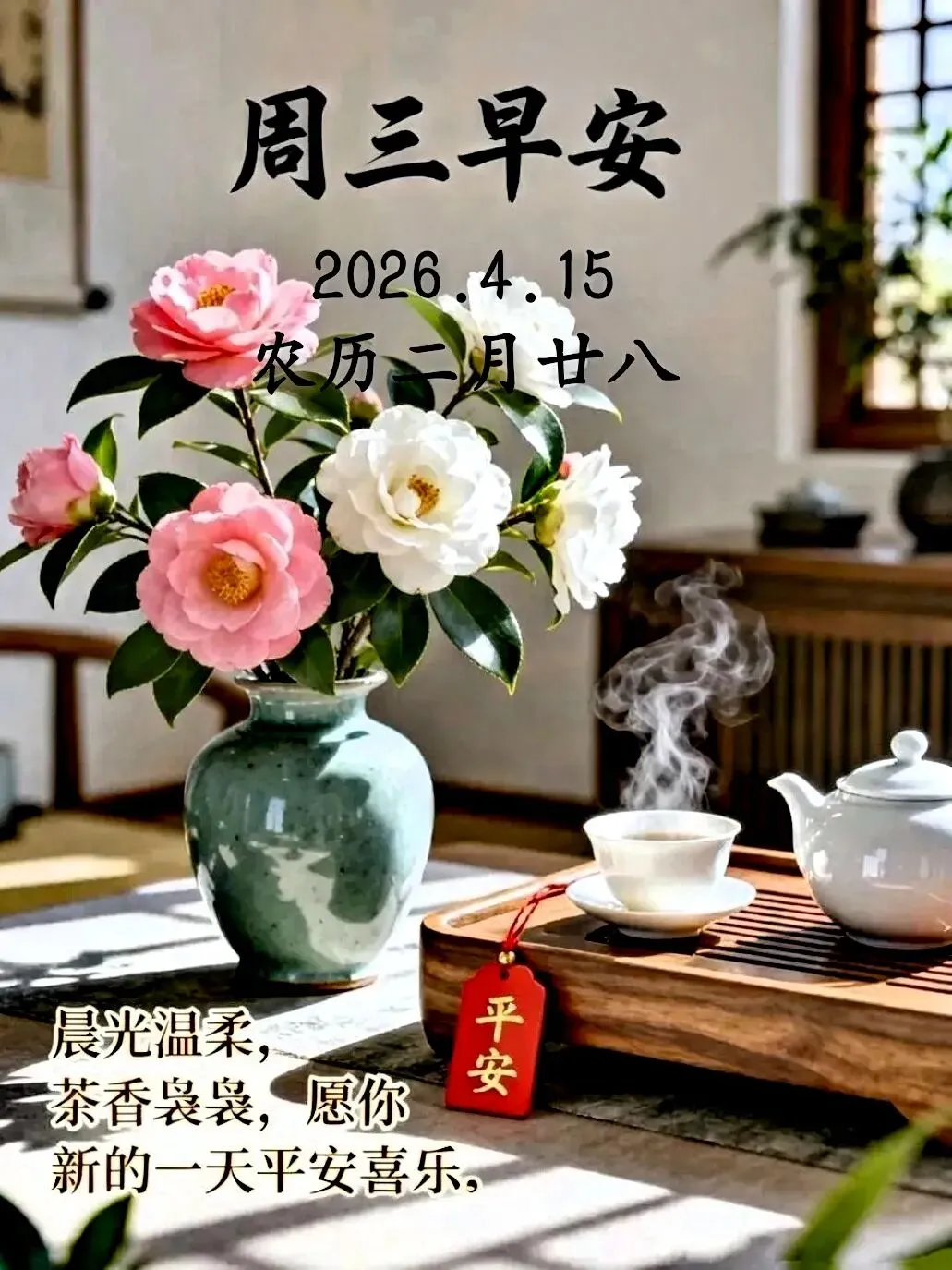 当前位置:首页>美女资讯>2026年4月15日周三早安暖心祝福图片,愿您心有暖阳 所遇皆美好