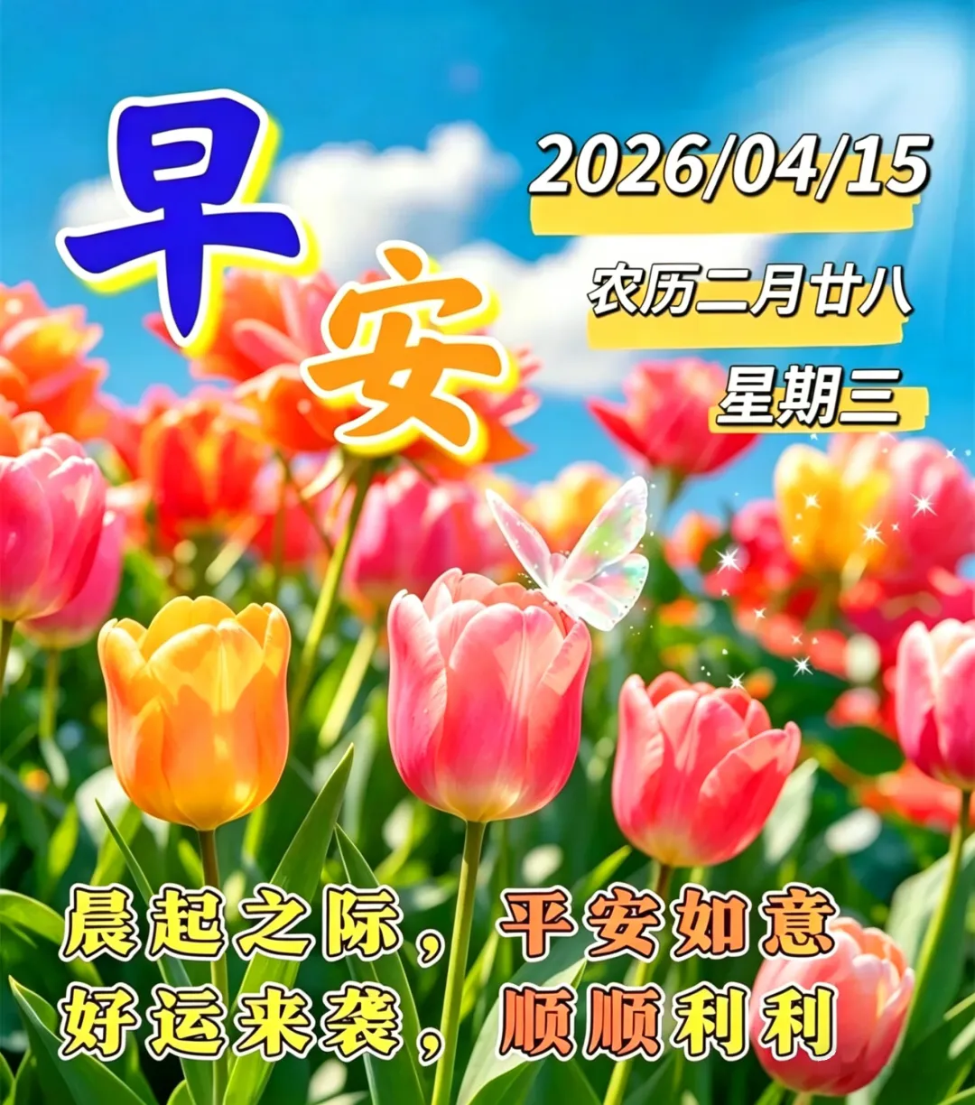 4月15日-周三早安漂亮图片祝福语+新的一天又来到,真诚问声早上好!