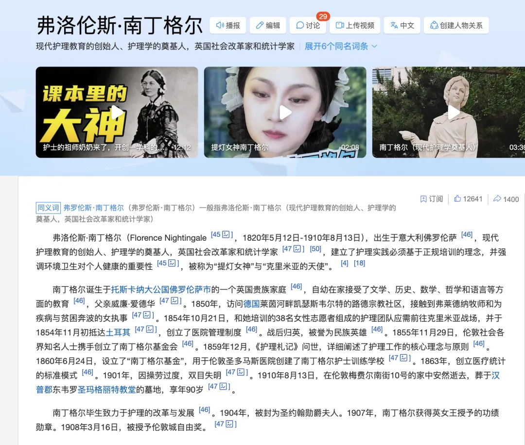 1.百度百科“弗洛伦斯·南丁格尔”词条