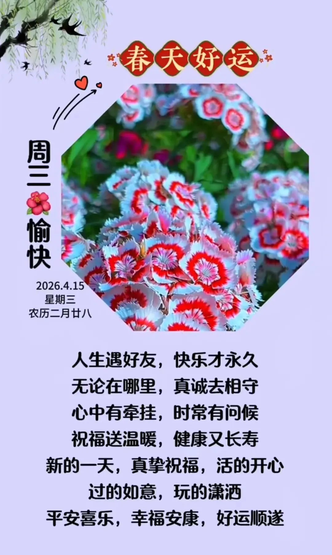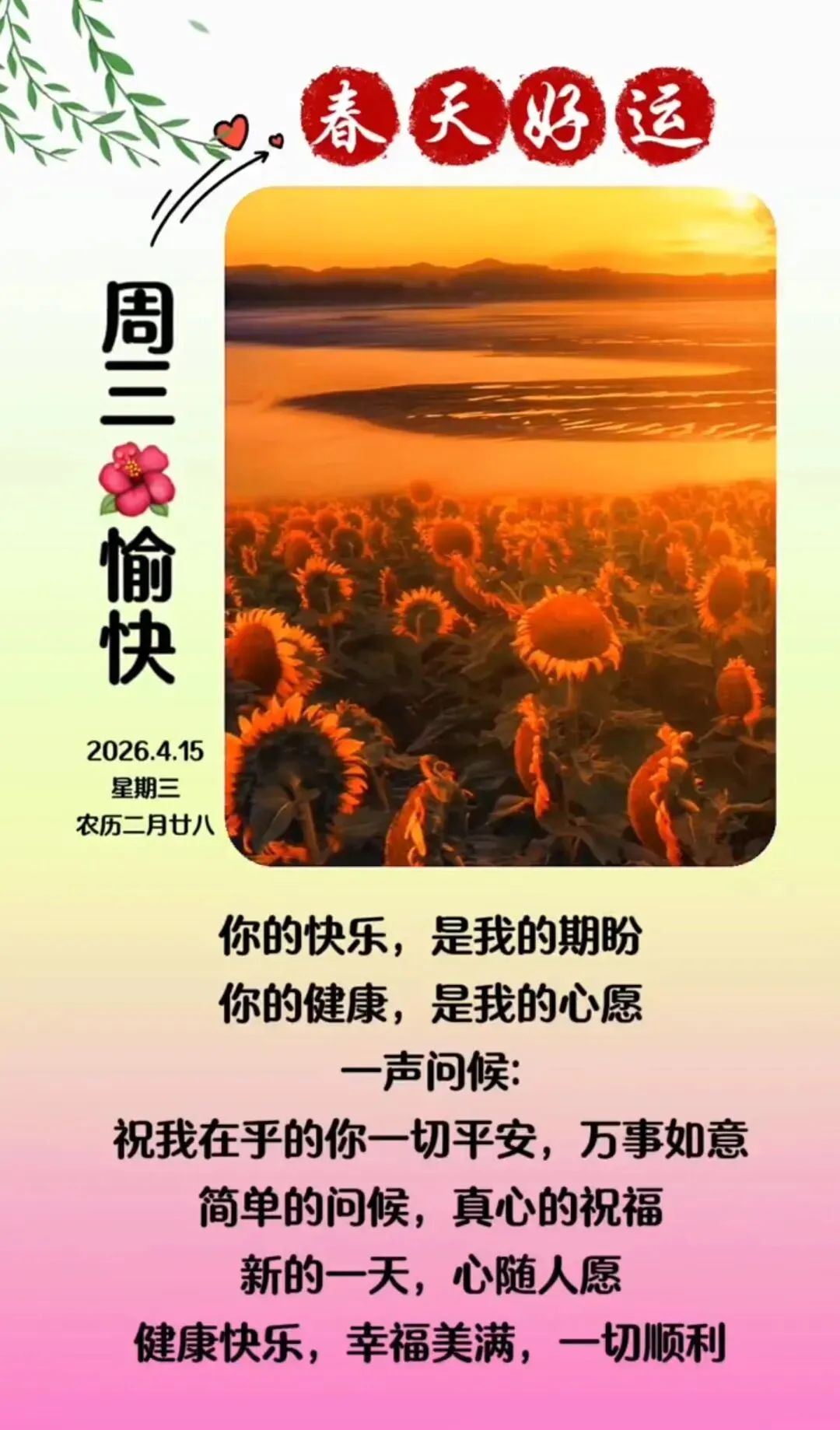 当前位置:首页>美女资讯>4月15日周三愉快图片早安祝福问候图片大全