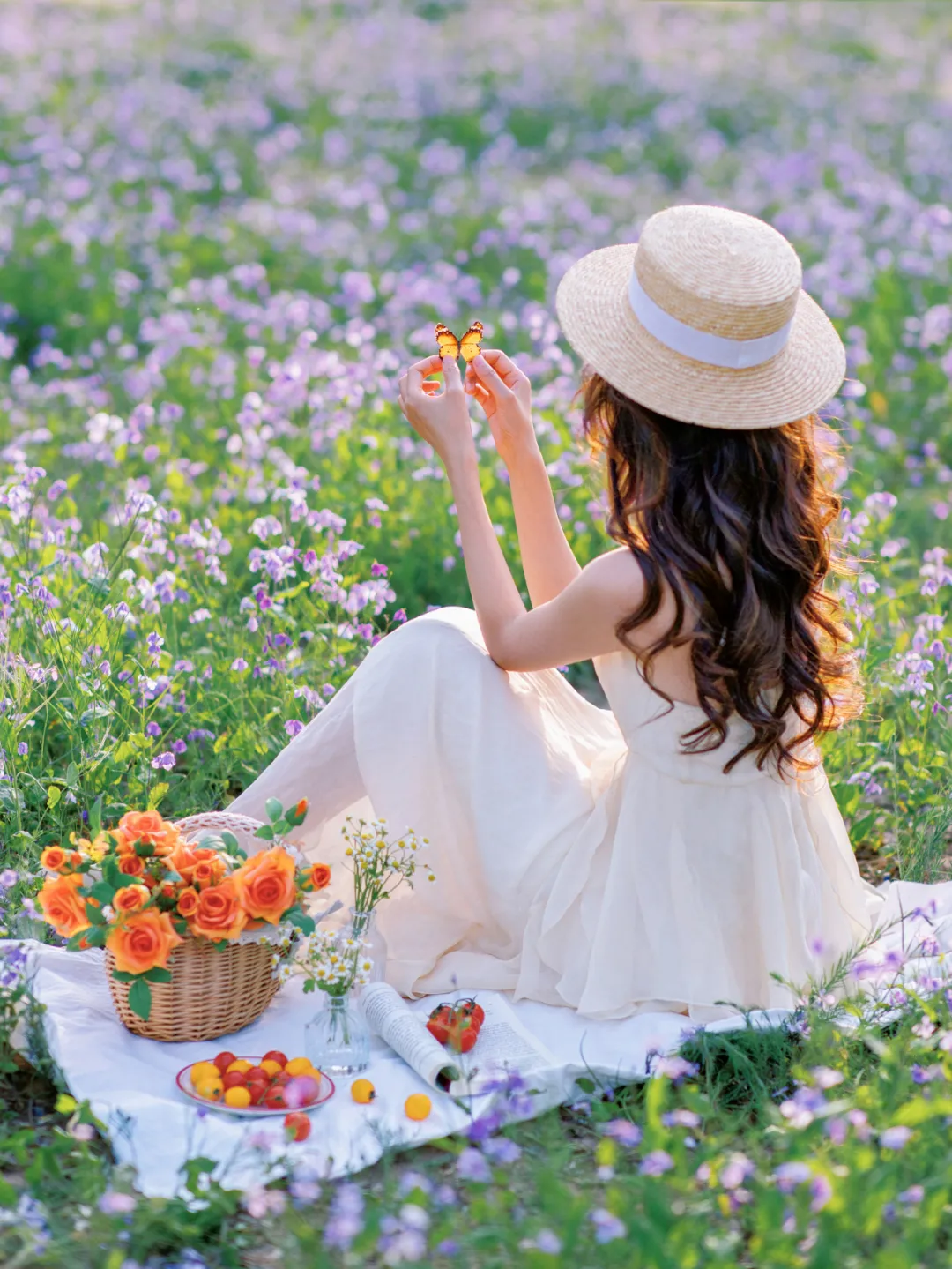 五、野餐侧坐,蝴蝶停指尖的温柔 🦋