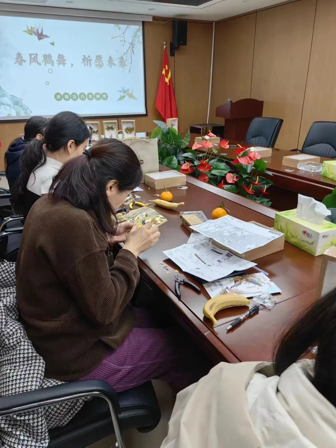 为迎接第114个“三八”国际妇女节,弘扬和传承中华传统文化,丰富女职工的精神文化生活,使女职工度过一个和谐温馨、轻松快乐的节日,3月8日上午,建筑公司在驻地会议室举办了主题为“春风鹤舞,祈愿未来”的三八女神节活动,公司在济女职工二十余人参加了活动。