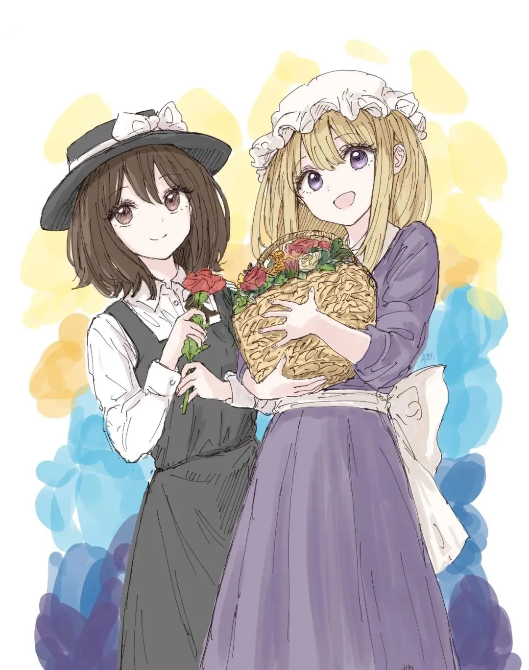 あおい老师绘制了一张雾雨魔理沙与爱丽丝。