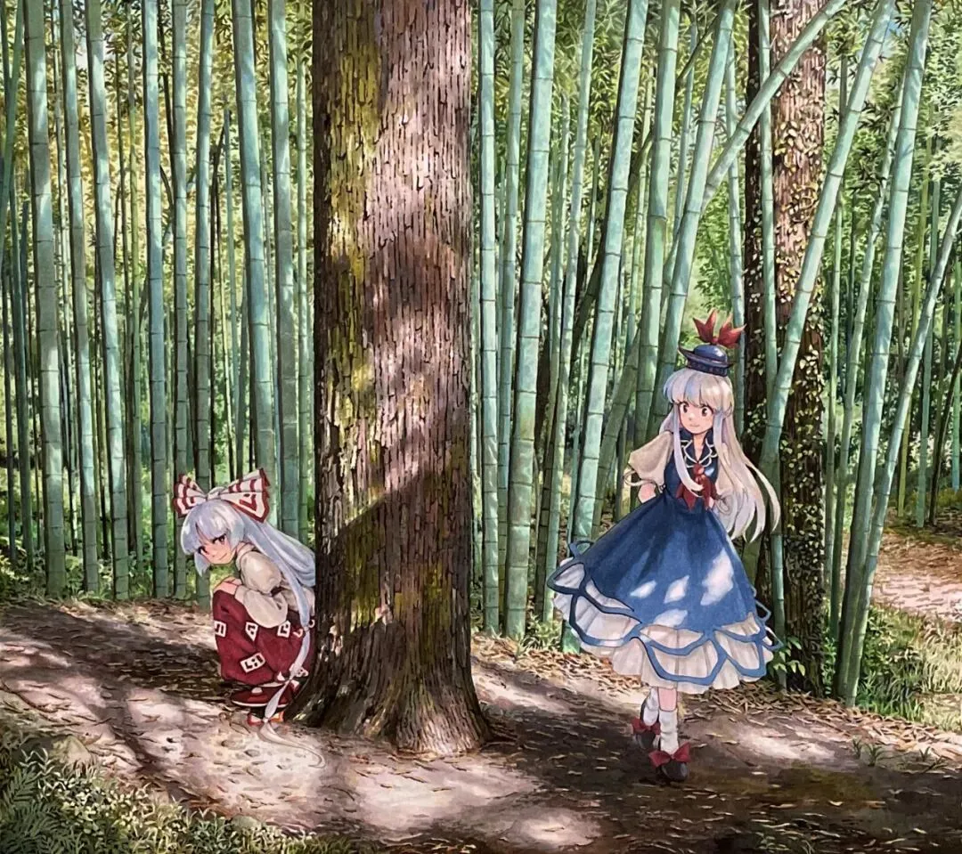 白玉老师绘制了一张藤原妹红与上白泽慧音。