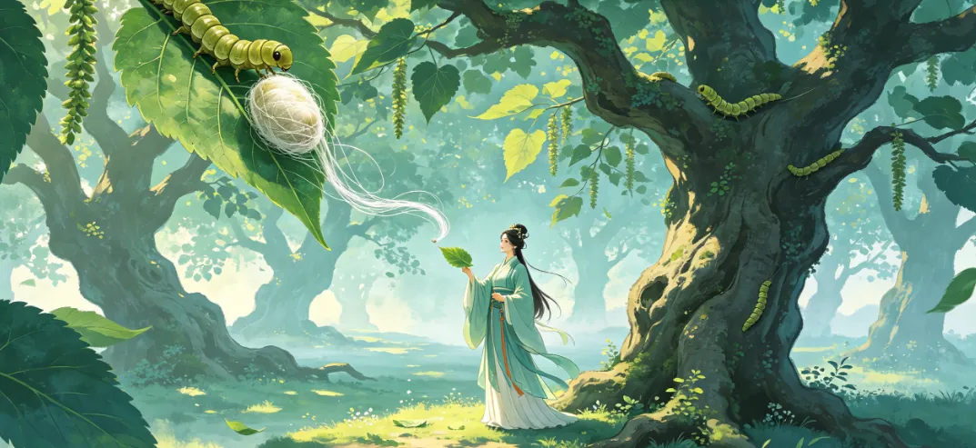 那丝绸薄如蝉翼、软若流云,做成衣裳,轻盈又保暖,跟树叶兽皮比起来,简直是天差地别。部落的乡亲们穿上新衣裳,个个喜笑颜开,而嫘祖做的第一件事,不是独享这份荣耀,而是把手把手教大家种桑、养蚕、缫丝、织绸