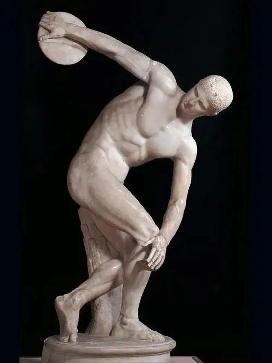 • 古希腊的《掷铁饼者》:肌肉线条像流动的韵律,没有一丝赘肉,那是人类对力量和理性的最高崇拜。