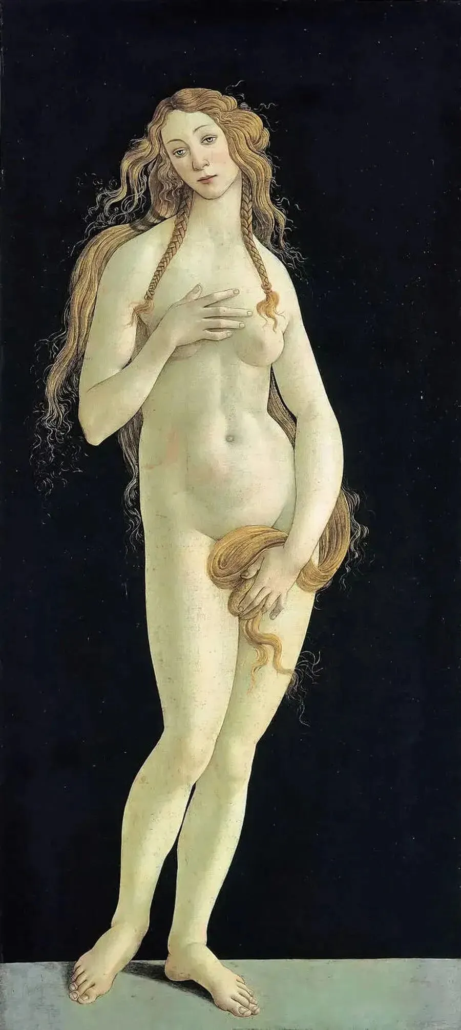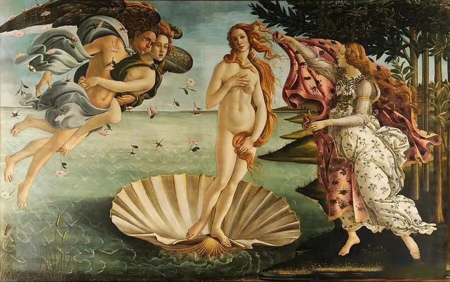 • 波提切利的《维纳斯的诞生》:维纳斯站在贝壳上,皮肤像珍珠一样光滑,她是“爱”与“美”的化身,不沾染任何世俗的尘埃。