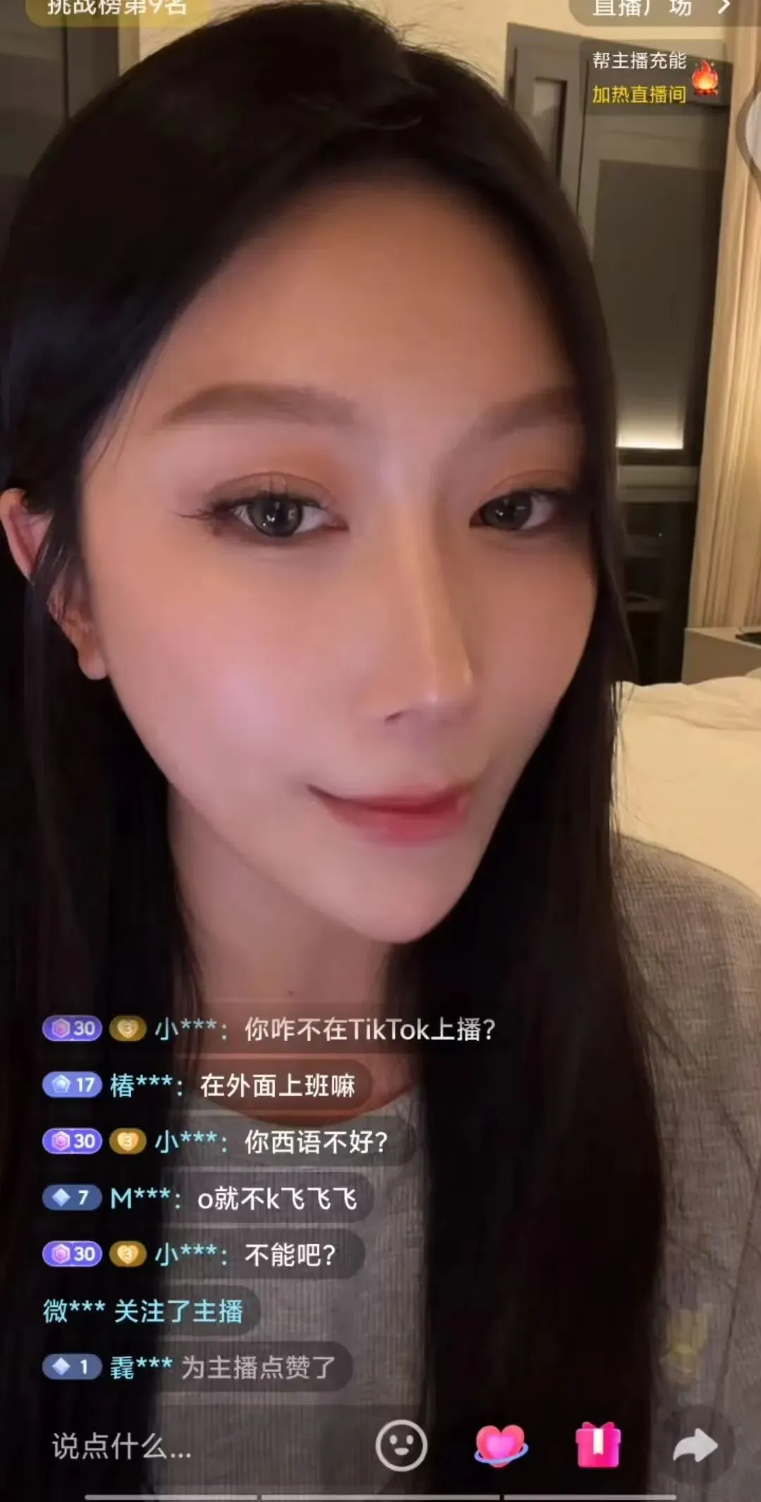 水友:所以是准备在那里发展吗?还回来吗?177:不,还是回的。我准备在这边先播的有点起色,然后就回国。弹幕:你咋不去tiktok上播?177:我英语不好啊,西语?毕业以后我的西语就散装了,语法什么的都是乱用!弹幕:要是播的没起色怎么办?177:那我就去杭州或者深圳,有很多事可以做!