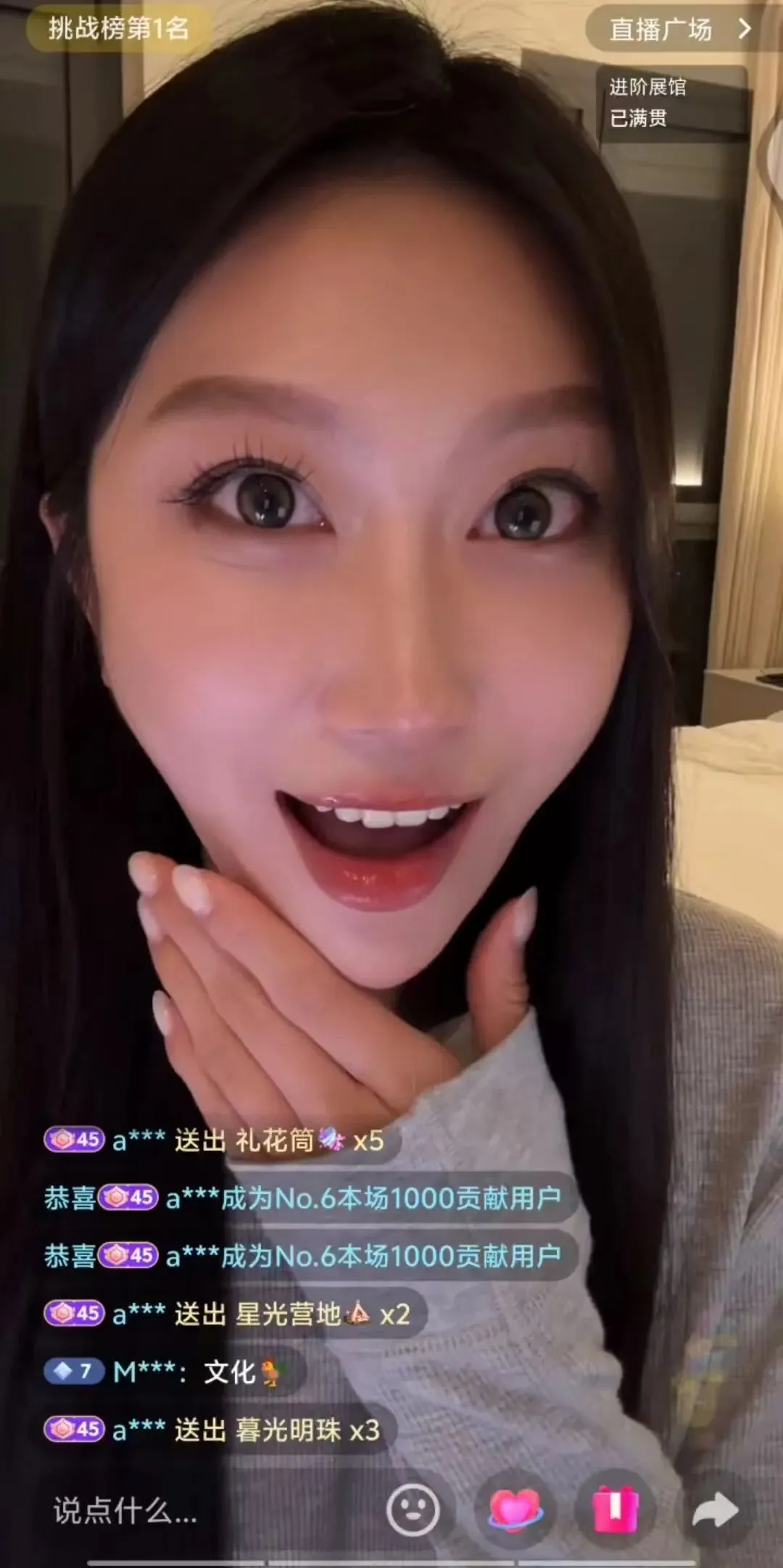 要说D音也是足够人性化,177疯狂的熬,D音就一直给她推流,进来的还都是看过她的老水友,比如一位叫“abb”的大哥进来一声不吭,就把177大部分展馆给点亮了,也算没白熬了!