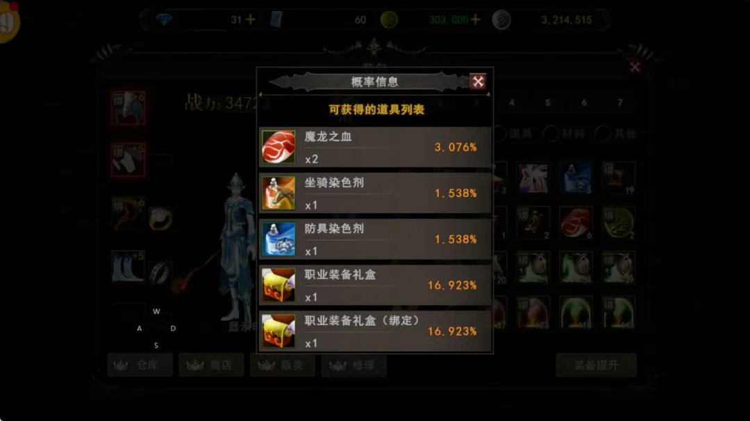• 其他稀有道具:各类强化材料、消耗品,满足日常养成需求。更高品级的黄金宝箱、石制宝箱,还可开出高阶装备、稀有材料、宝石等超值奖励,品级越高,极品道具概率越高。