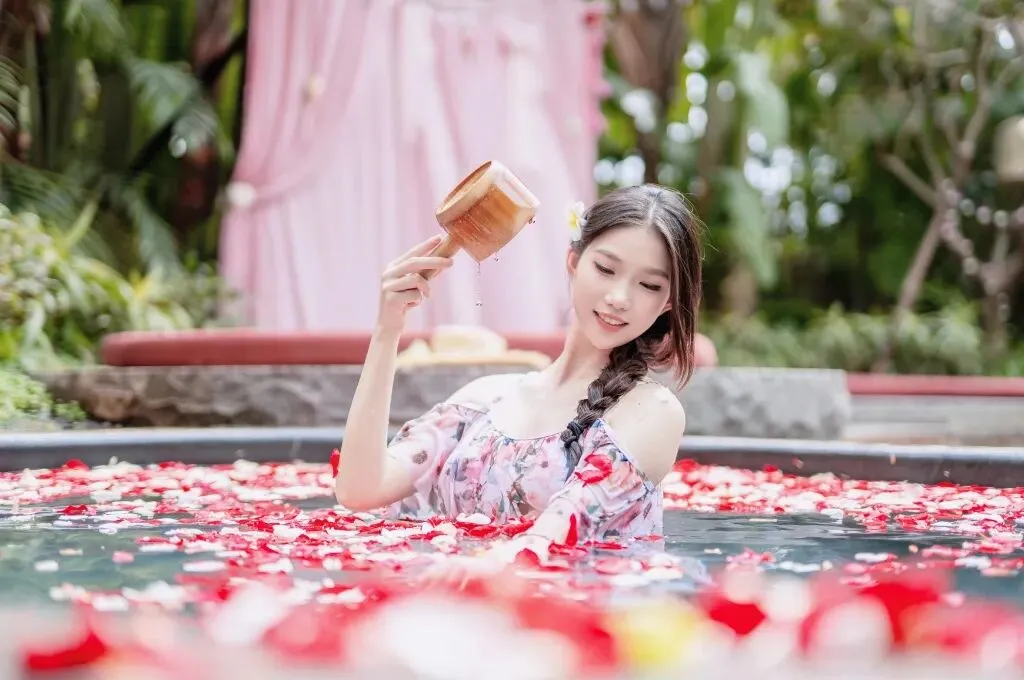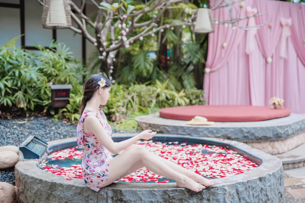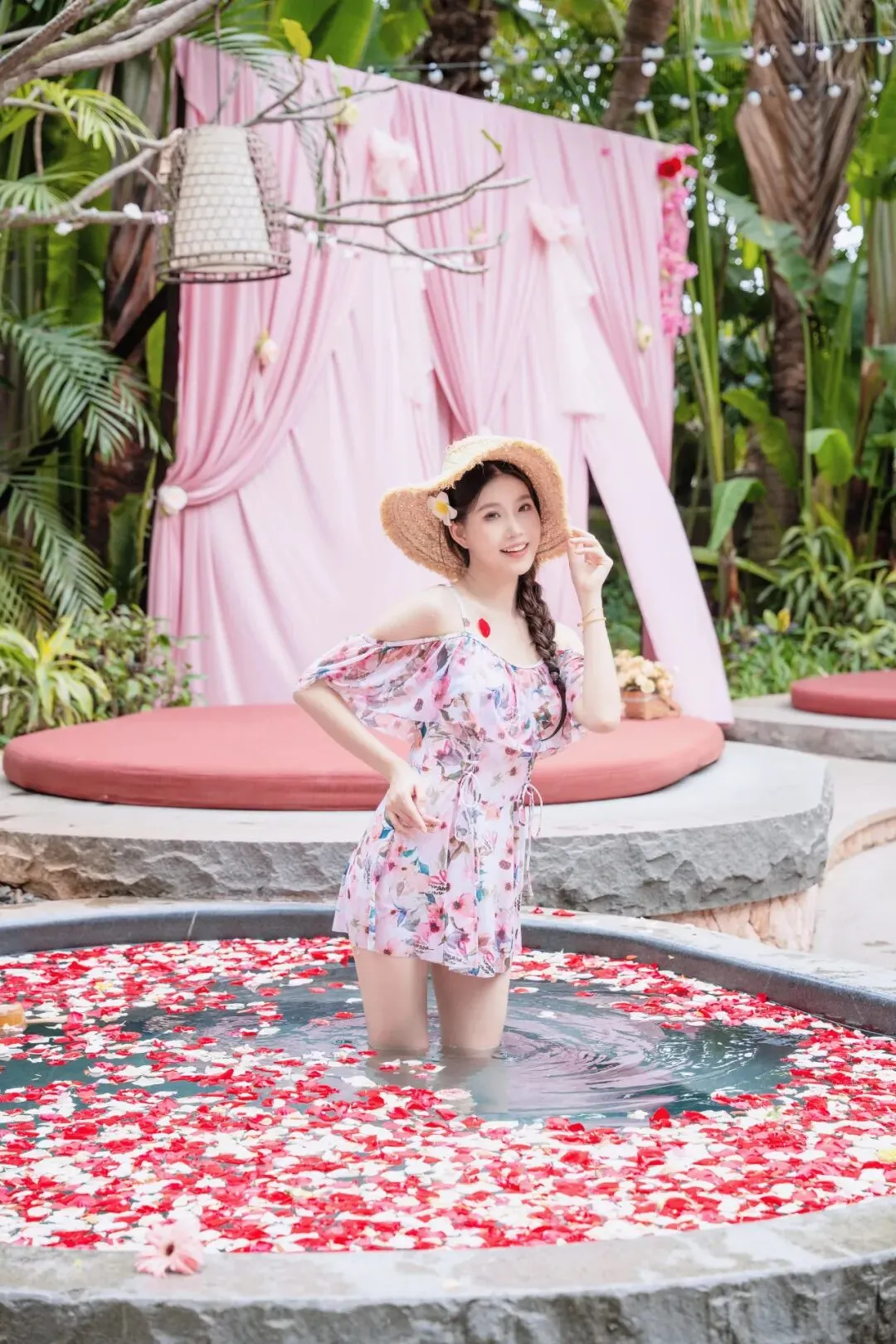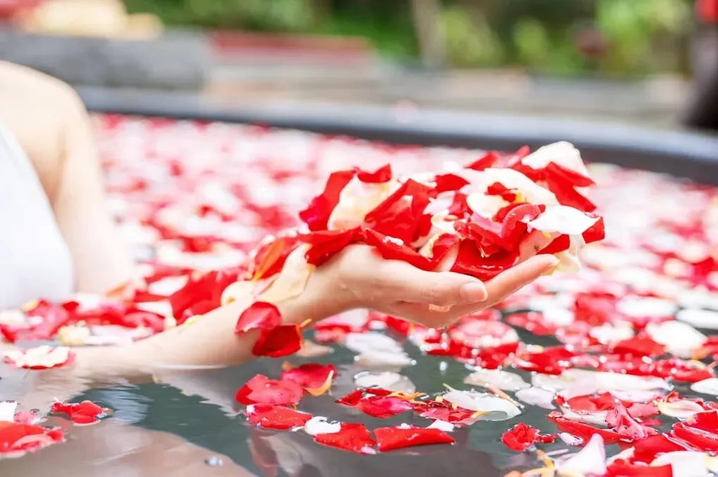 备受女生青睐的花瓣泉,在温泉水加入玫瑰花瓣,花香袭人,拉上闺蜜一起凹美美的造型,随手一拍就是一组大片。