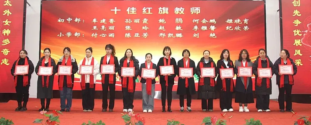 太外有260多名女员工,不仅精神振奋,风釆靓丽,而且埋头苦干,人格高尚,用教书育人的行动践行着太外以爱心培育爱心,用人格塑人格的教育理念,践行着全心全意为全体学生负责,教好每位学生的信念,践行着爱生如子和潜心育人,她们用实际行动和优异成果打造了优质教育和魅力太外。尤其是今天将要受表彰的小学初中高中20多名十佳红旗教师,更是教师中的姣姣者,排头兵,是教书育人,勇于担当,勇于奉献的班主任和超工作量的老师,是经过星级考核,成绩优异的教坛女神,在此,我要代表学校提前向她们表示热烈的祝贺和崇高的敬意!