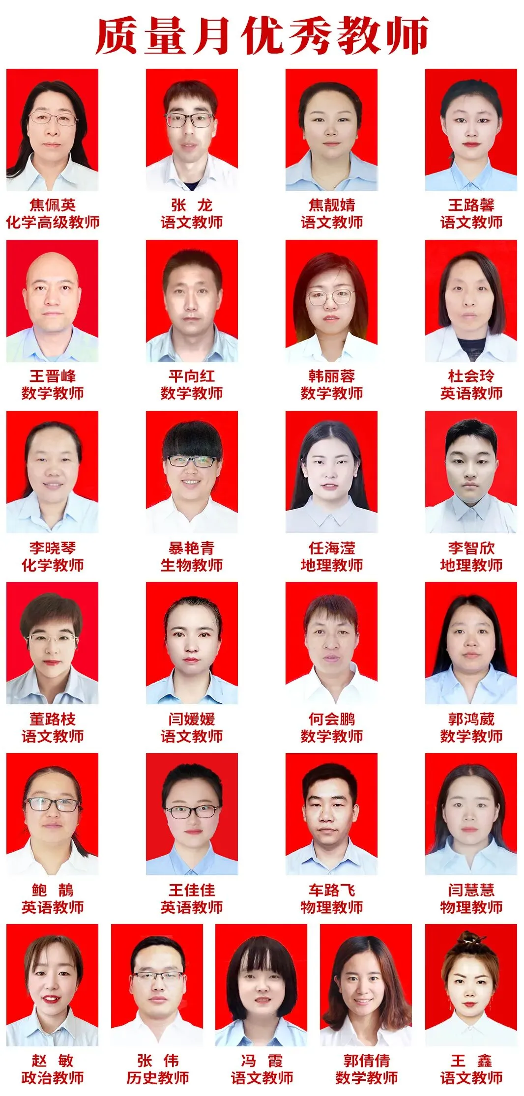 质量月优秀教师