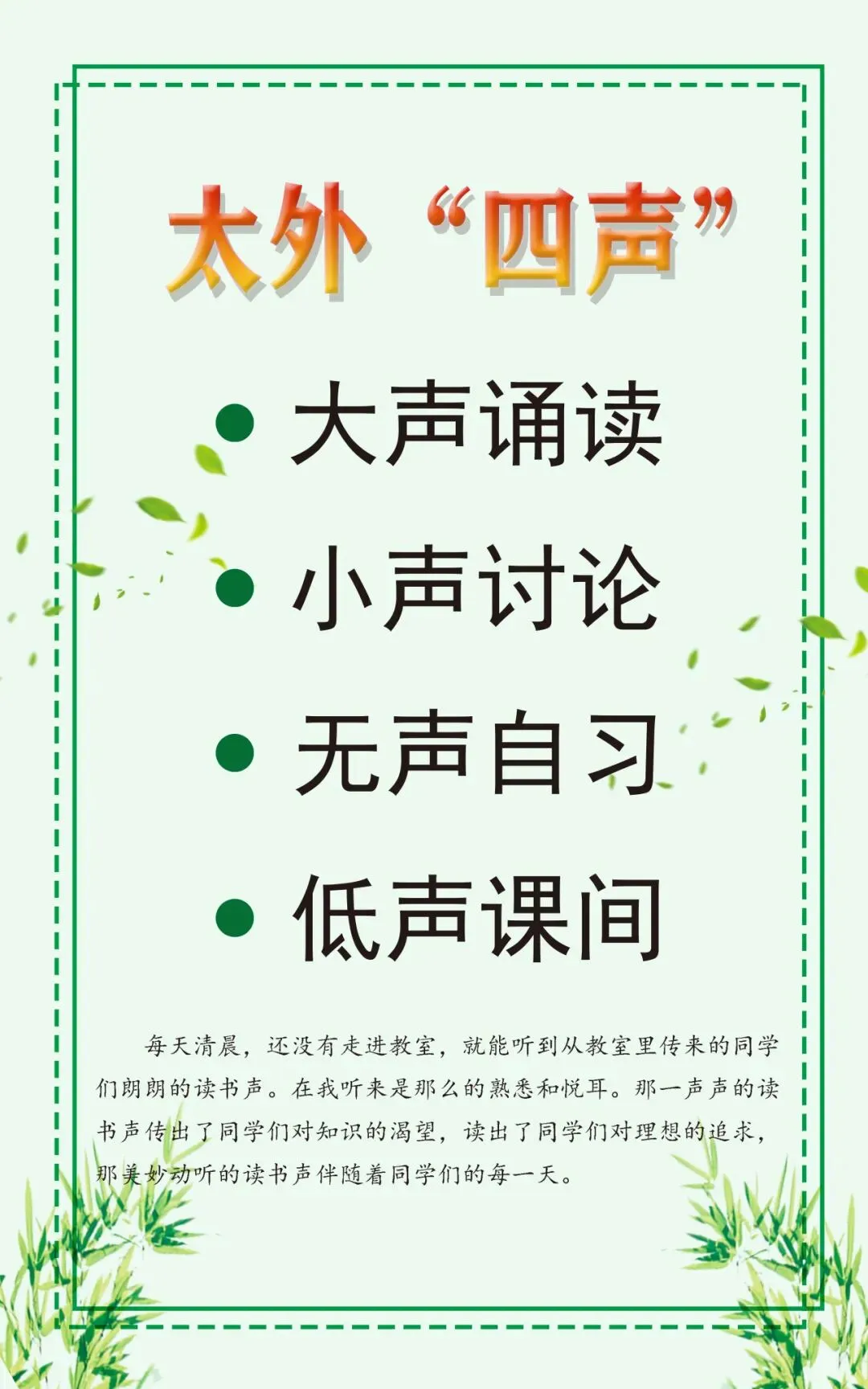 心系每位学生,精心呵护每一颗幼苗。教育学生从生活的点点滴滴学习做人,在学校的时时刻刻都要取得进步,用心发现闪光,用爱灌溉成长。