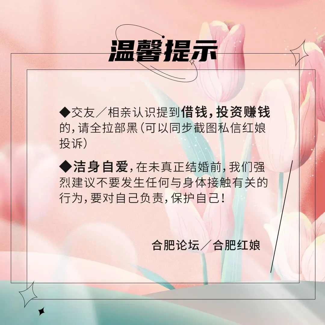 以上为原创内容,照片及资料只作为嘉宾自我展示之用,未经许可不得转载/盗用,或截取某一部分,一经发现,合肥红娘将追究相关当事人法律责任
