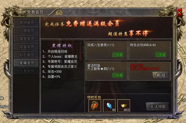 ✅ 满级会员免费送,无需花钱,完成任务即可解锁,同步领取对应特权礼包,起步即巅峰;