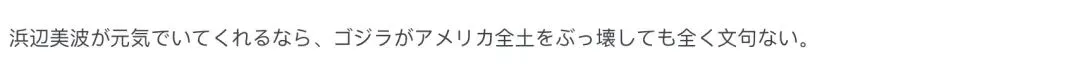 “只要滨边美波还能继续活蹦乱跳,哥斯拉把整个美国拆了我都没意见。”