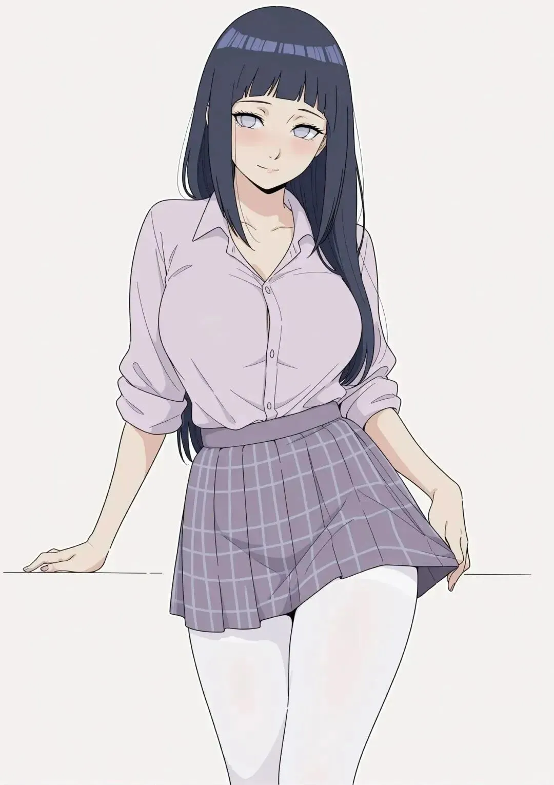 淡紫色衬衫的布料柔软,我细致地描绘出衣料贴合身形的褶皱,领口微敞露出精致的锁骨,袖口挽起的弧度刚好露出纤细的手腕。格子百褶裙的线条要细腻,白丝的质感要通透,连裙摆被风掀起的细微角度,都精准复刻。