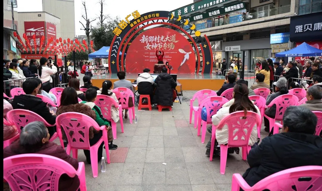 3月7日,在第116个“三八”国际劳动妇女节来临之际,以“巾帼绽芳华·歌声耀新邵”为主题的2026新邵村光大道女神专场演唱会,在湾田广场燃情开唱。