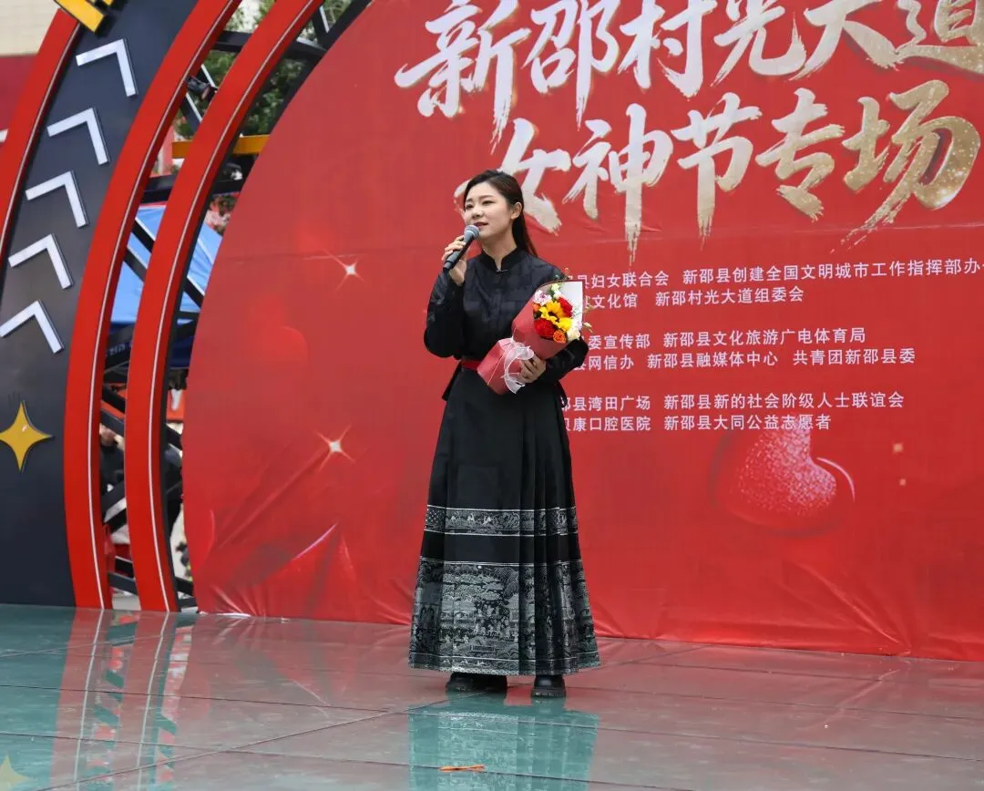 活动开篇举行致敬巾帼榜样环节,现场为国家级非物质文化遗产“新邵孙氏正骨术”第四代代表性学术传承人孙燕、青年创业典型王婕两位杰出女性敬献鲜花,致敬她们在医术传承、创新创业领域的坚守与担当。
