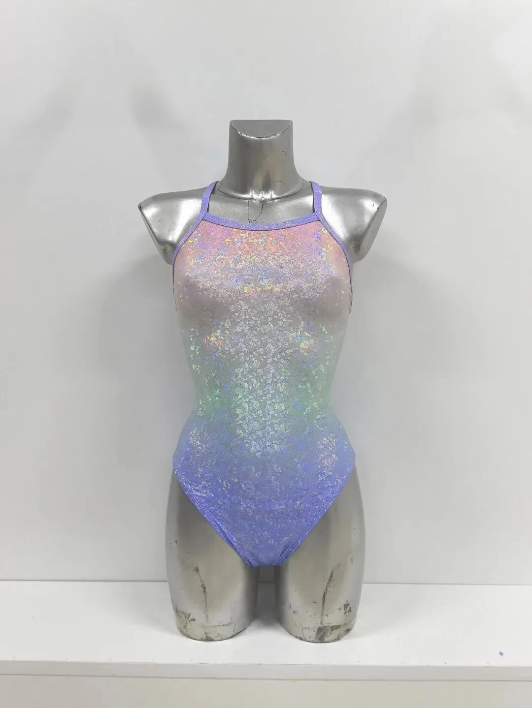 很多人拍泳衣照片,最怕的不是穿搭不够亮眼,而是站着太直,转身太僵,照片一出来就像试衣记录,这组图本身就很有优势,珠光渐变的浅紫连体泳衣,颜色轻,反光细,放在干净背景里就很容易拍出清透感,