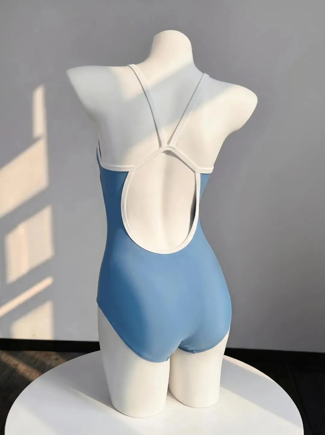 很多人拍泳衣照,最怕的不是场景不够美,而是动作一摆就紧,肩背放不开,照片看着很用力,这组图其实特别适合照着学,浅蓝色连体泳衣本身就很干净,白边线条也很能带出腰线背部轮廓