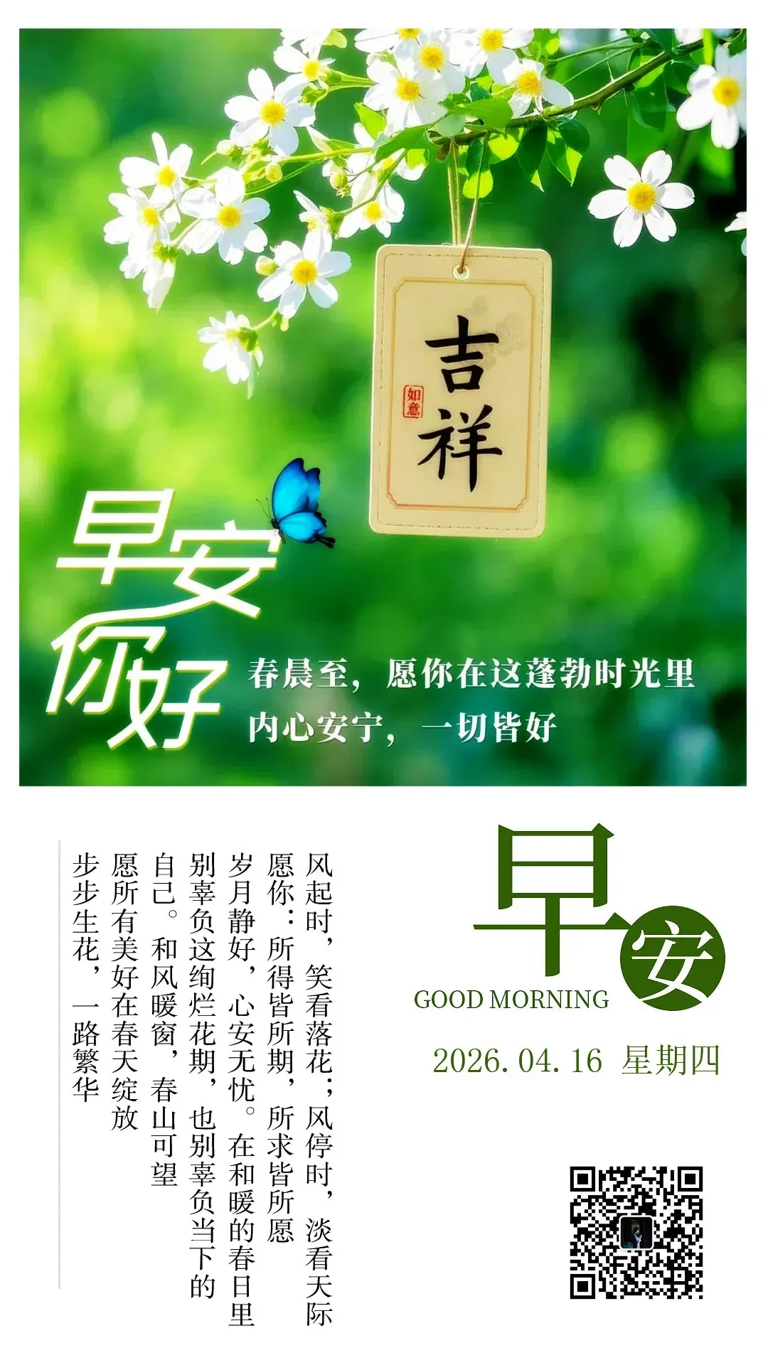 当前位置:首页>美女资讯>4月16日早安心语祝福图片:和风暖窗,春山可望,愿所有美好在春天绽放,步步生花,一路繁华!