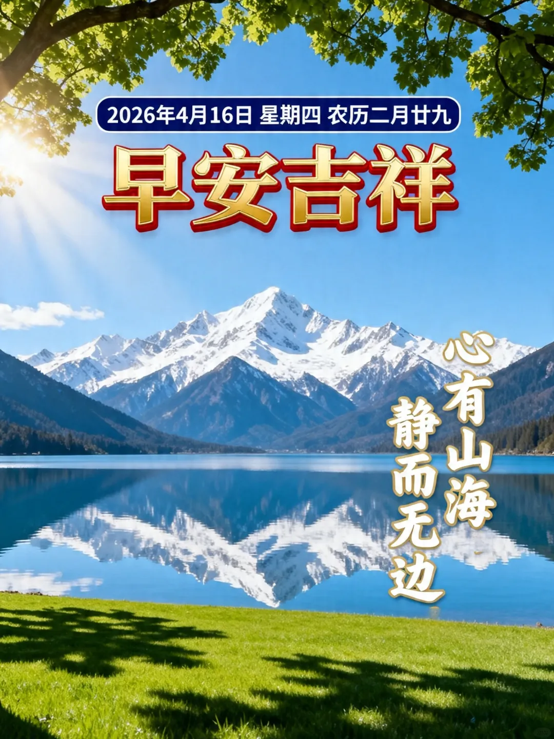 2026年4月16日长方形早安图片带日期:愿这个清晨,能带给你一身轻松,一世安康,四季无忧.