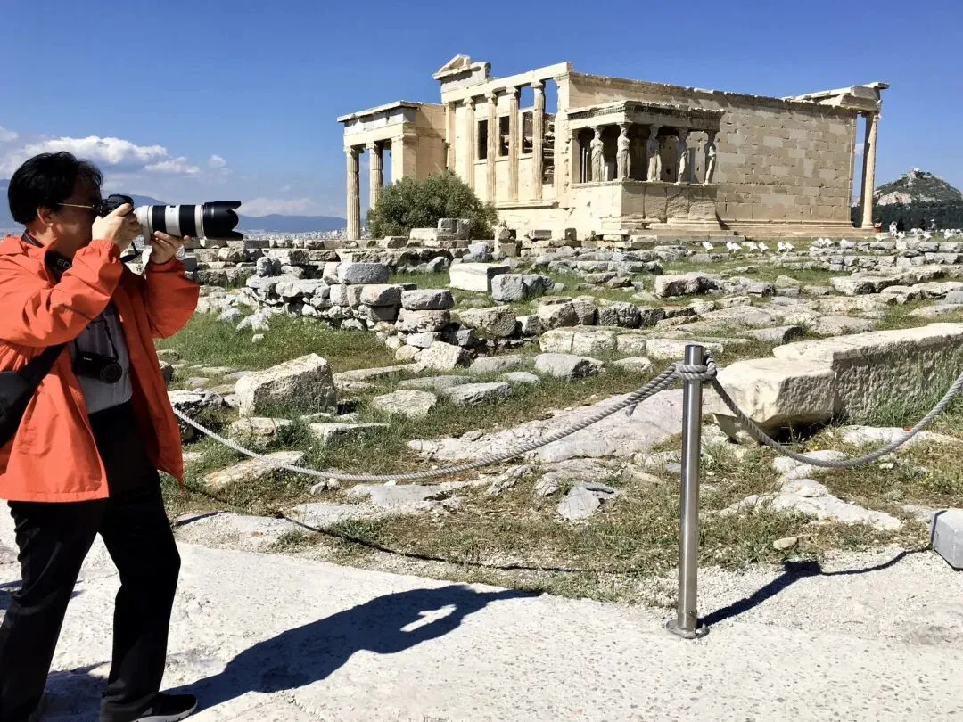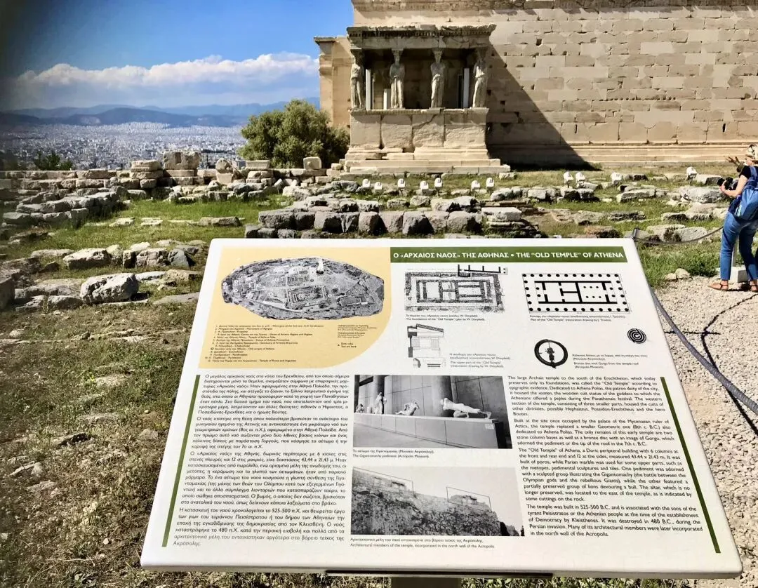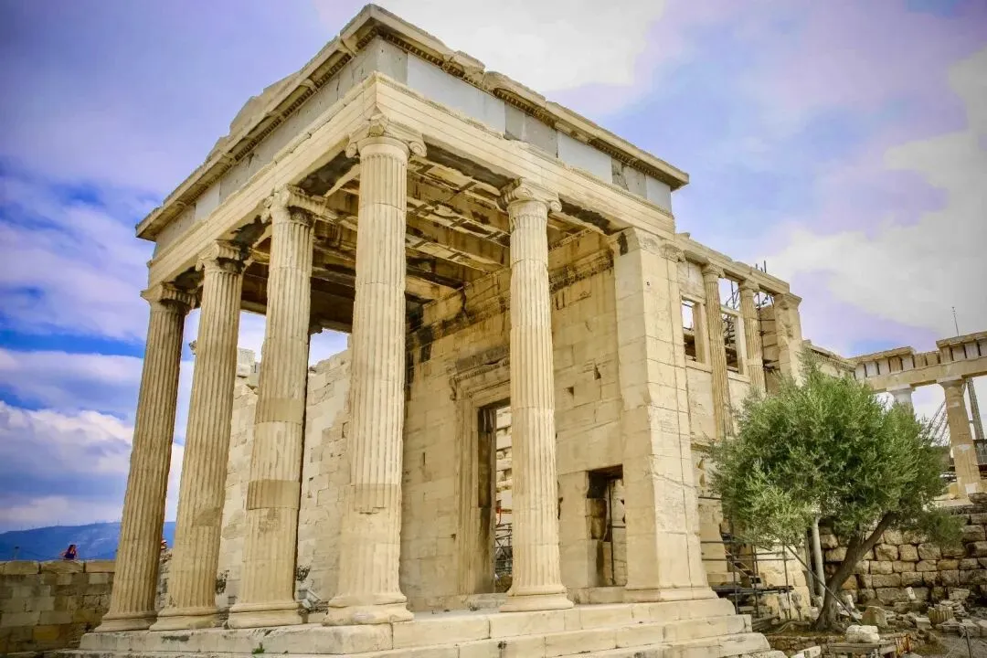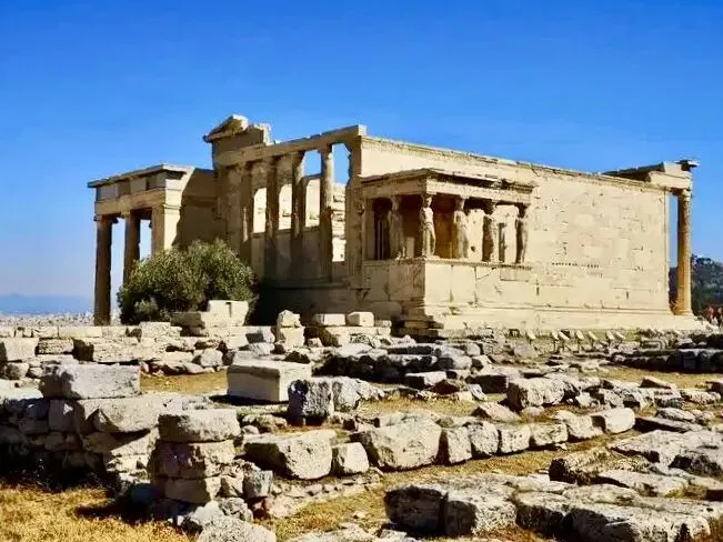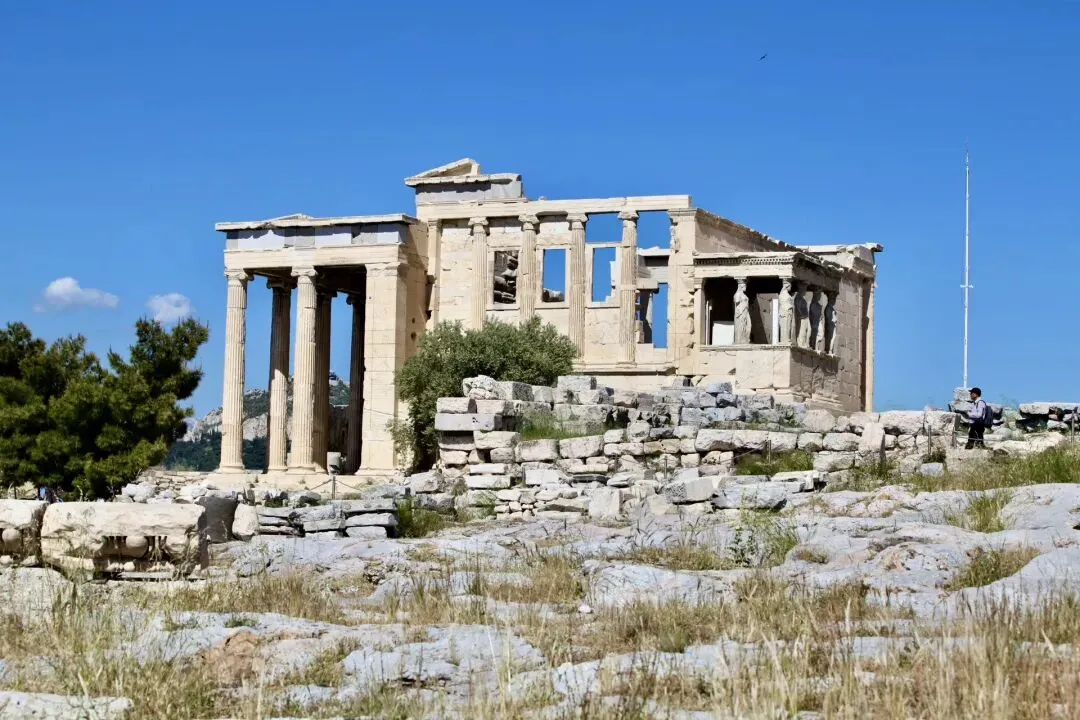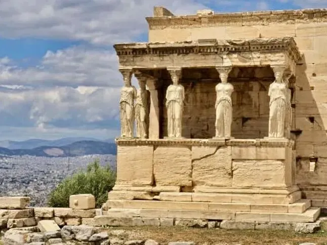 为了避免空气污染及保存古迹,雅典卫城伊瑞克提翁神庙上的六个少女廊柱”都是仿制替代物。
