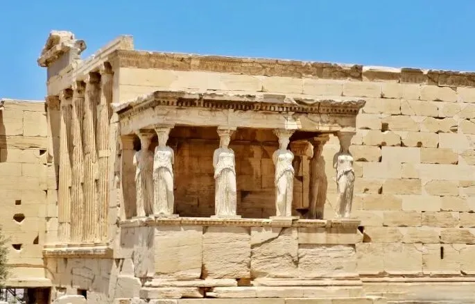 伊瑞克提翁神庙有一个最大的亮点能够吸引所有到访雅典卫城的游客,那就是在这座神殿南侧廊台,有六尊女像柱(Caryatids)