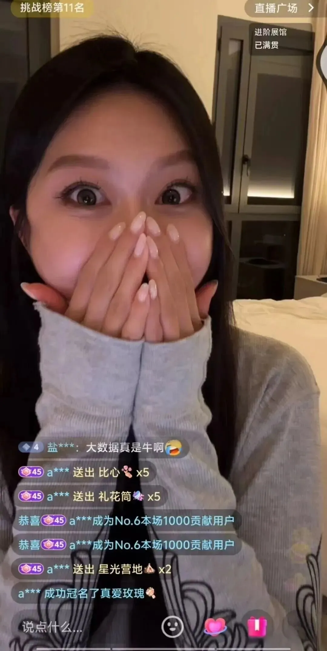 没错,整整一通宵。妈妈睡前看她还在对着手机屏幕眉飞色舞,睡醒了发现女儿居然还在播!气得直吐槽:“太不容易了,你这是不要命了?”