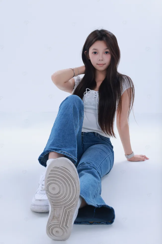 不需要复杂的背景,一方纯白就足够。最舒适的姿态,是卸下所有防备,与真实的自己对话。牛仔的率性,白衫的纯粹,勾勒出青春最本真的模样。这一刻,时光放缓,我只属于我自己,简单,而快乐。
